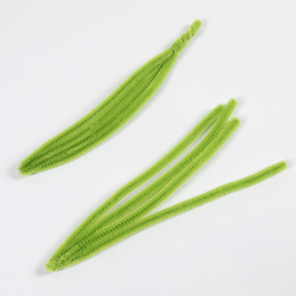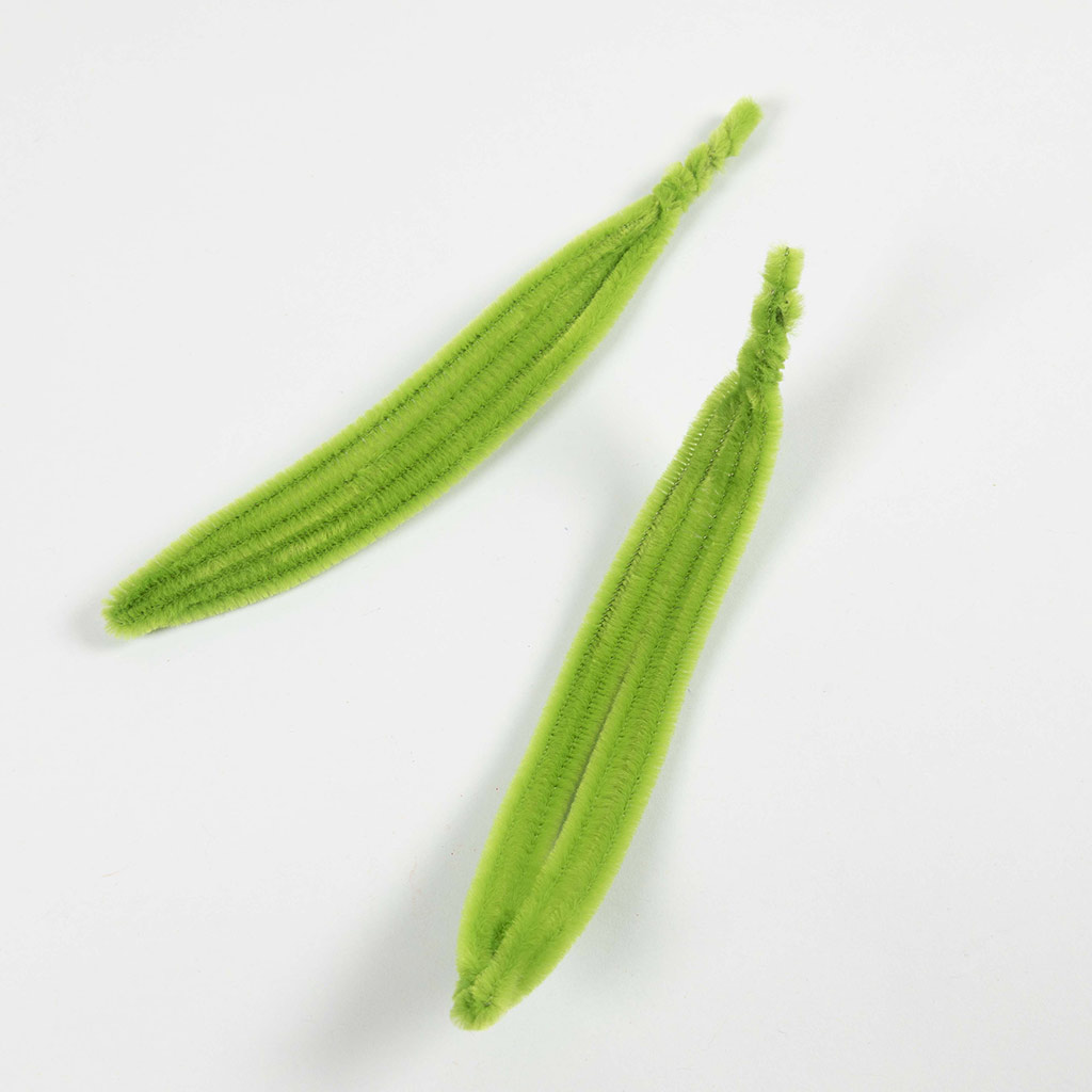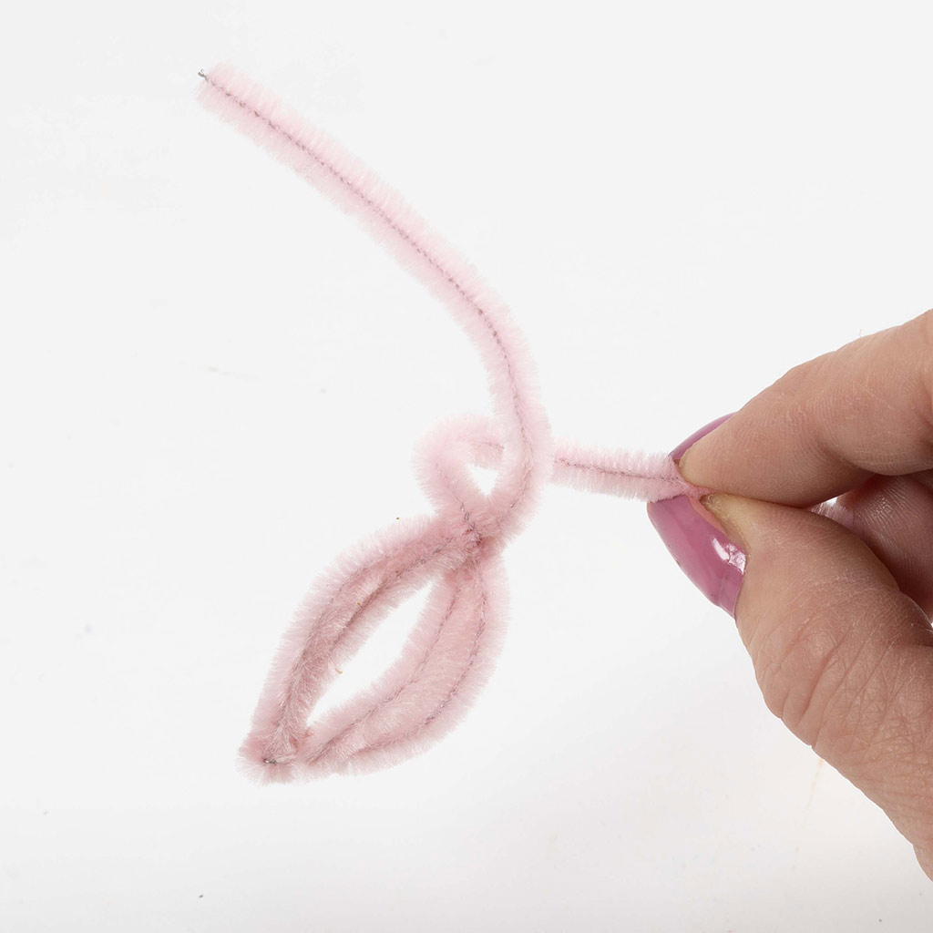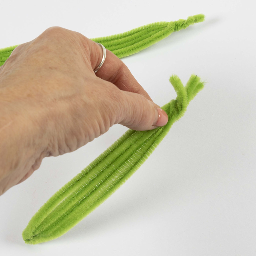 Gebruik twee chenilledraden voor elk blad en vouw ze doormidden.