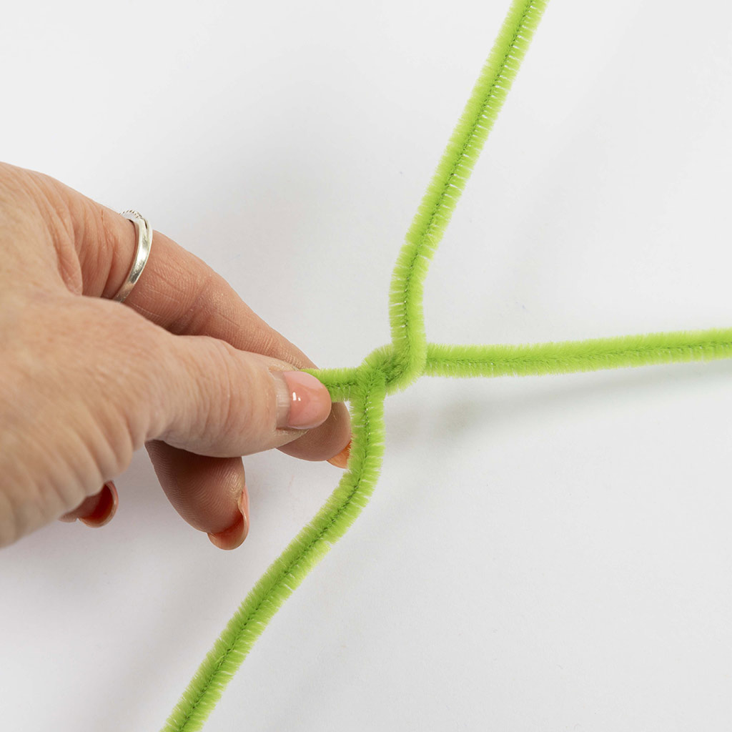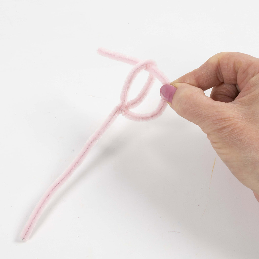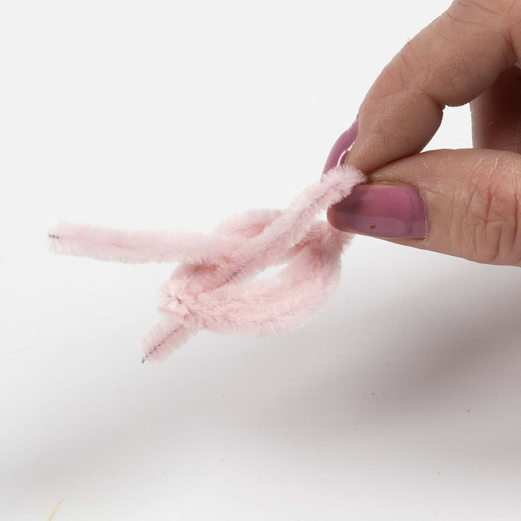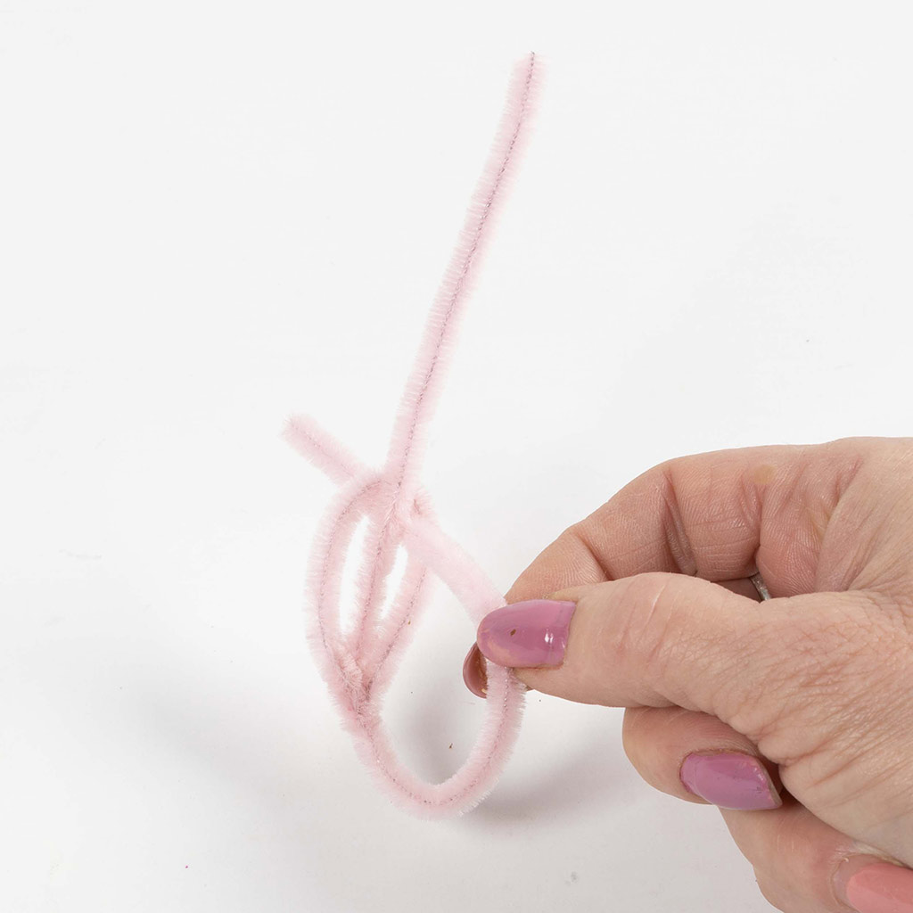 Gebruik twee chenilledraden voor elk blad en vouw ze doormidden.