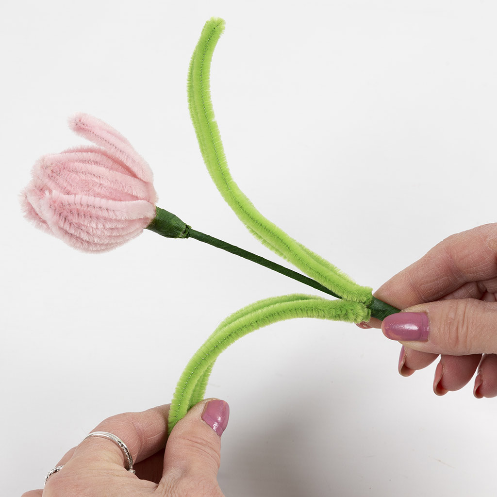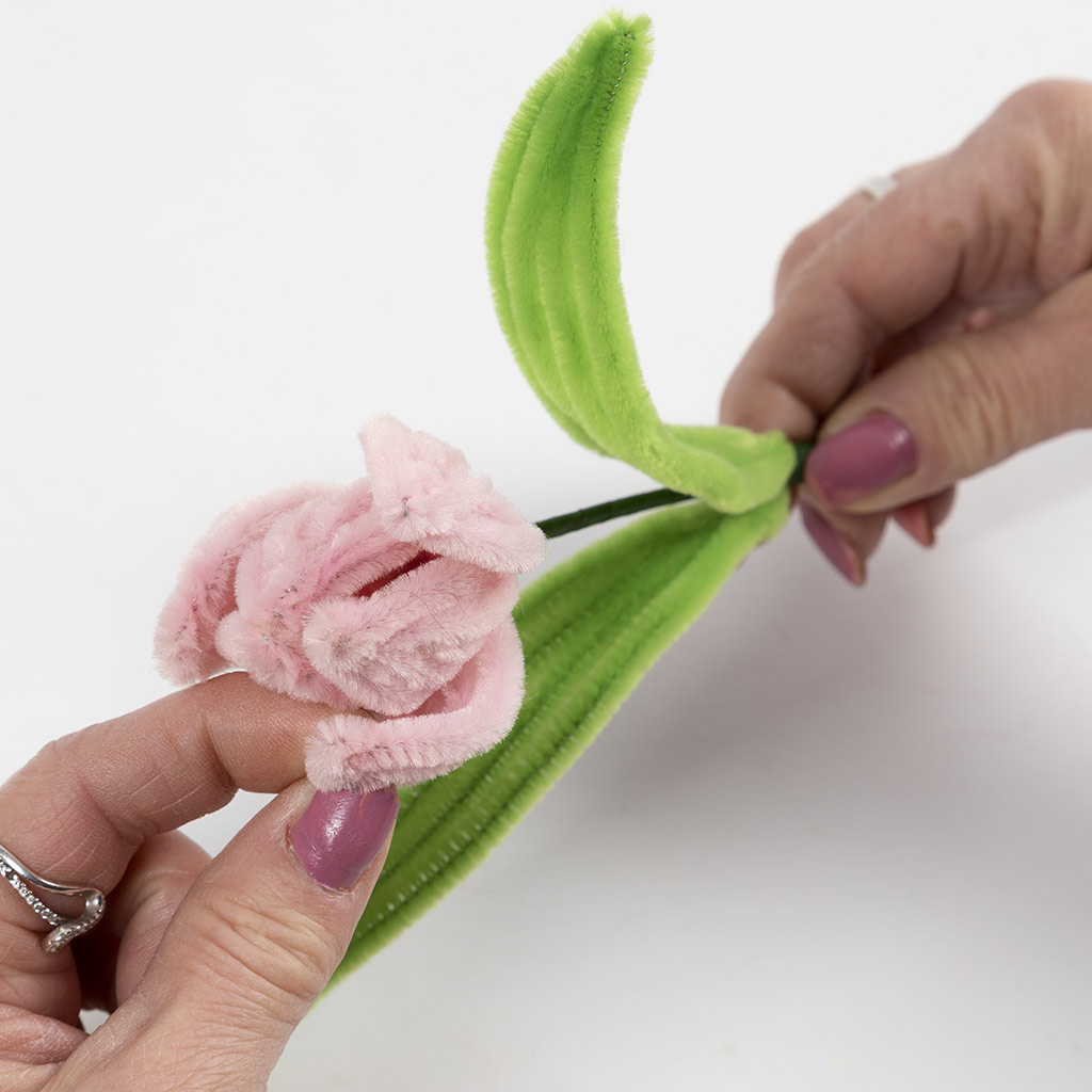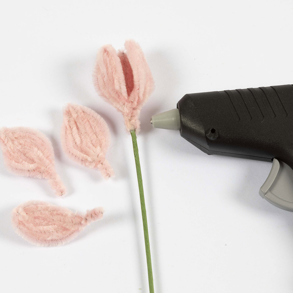 Maak voor elke tulp zes blaadjes en vouw iedere chenilledraad doormidden.