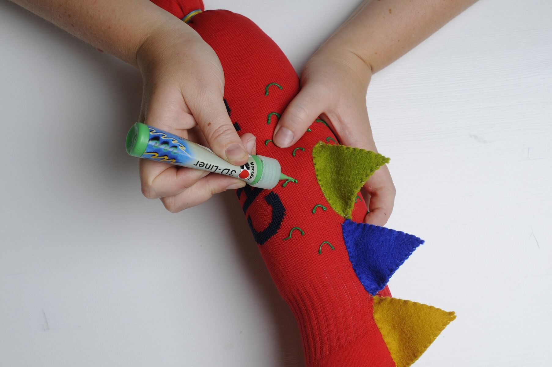 Als laatste teken je met de 3D-liner enkele schubben op de sok.