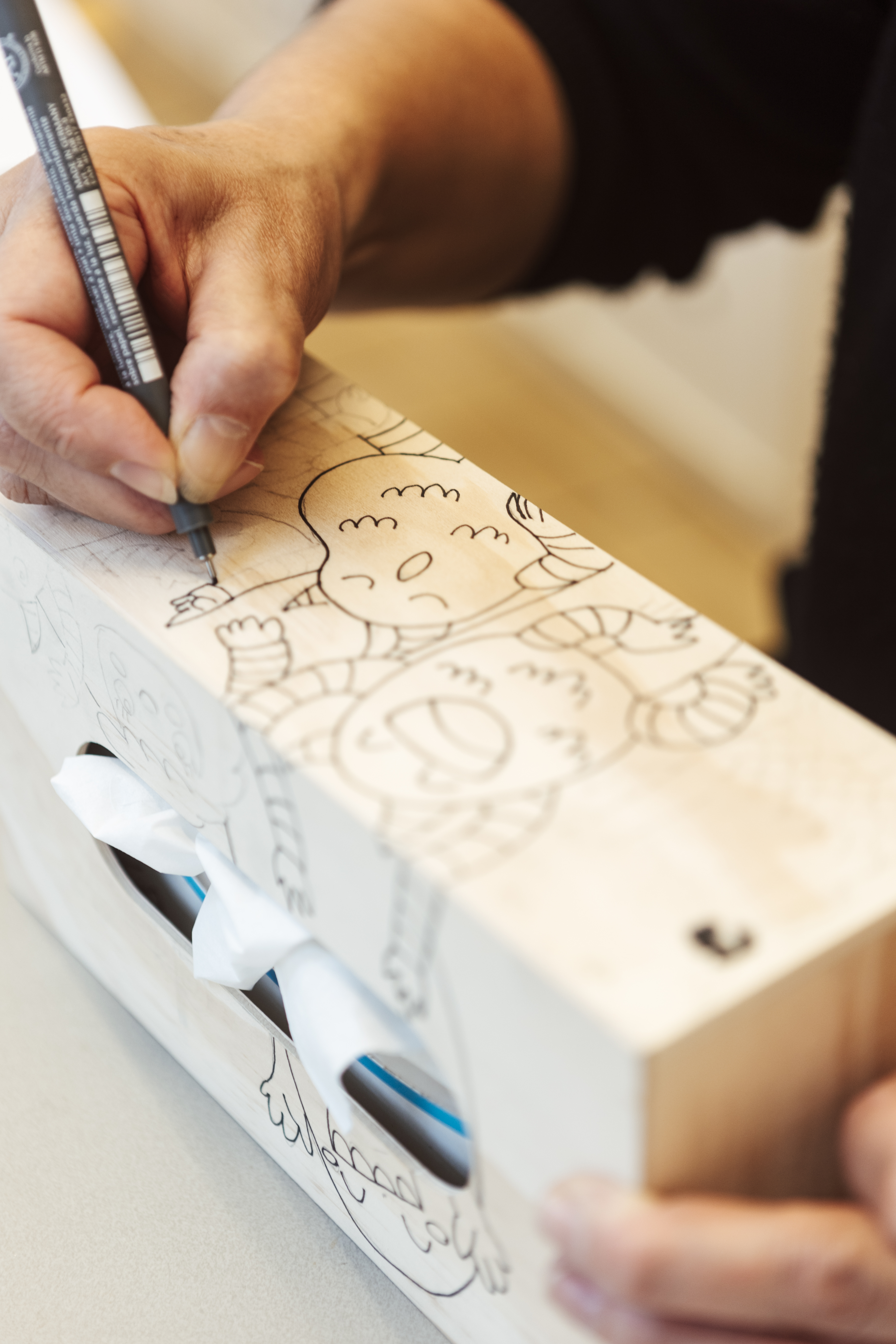 Kies een tekst of tekening en zet deze met potlood over op je doos.