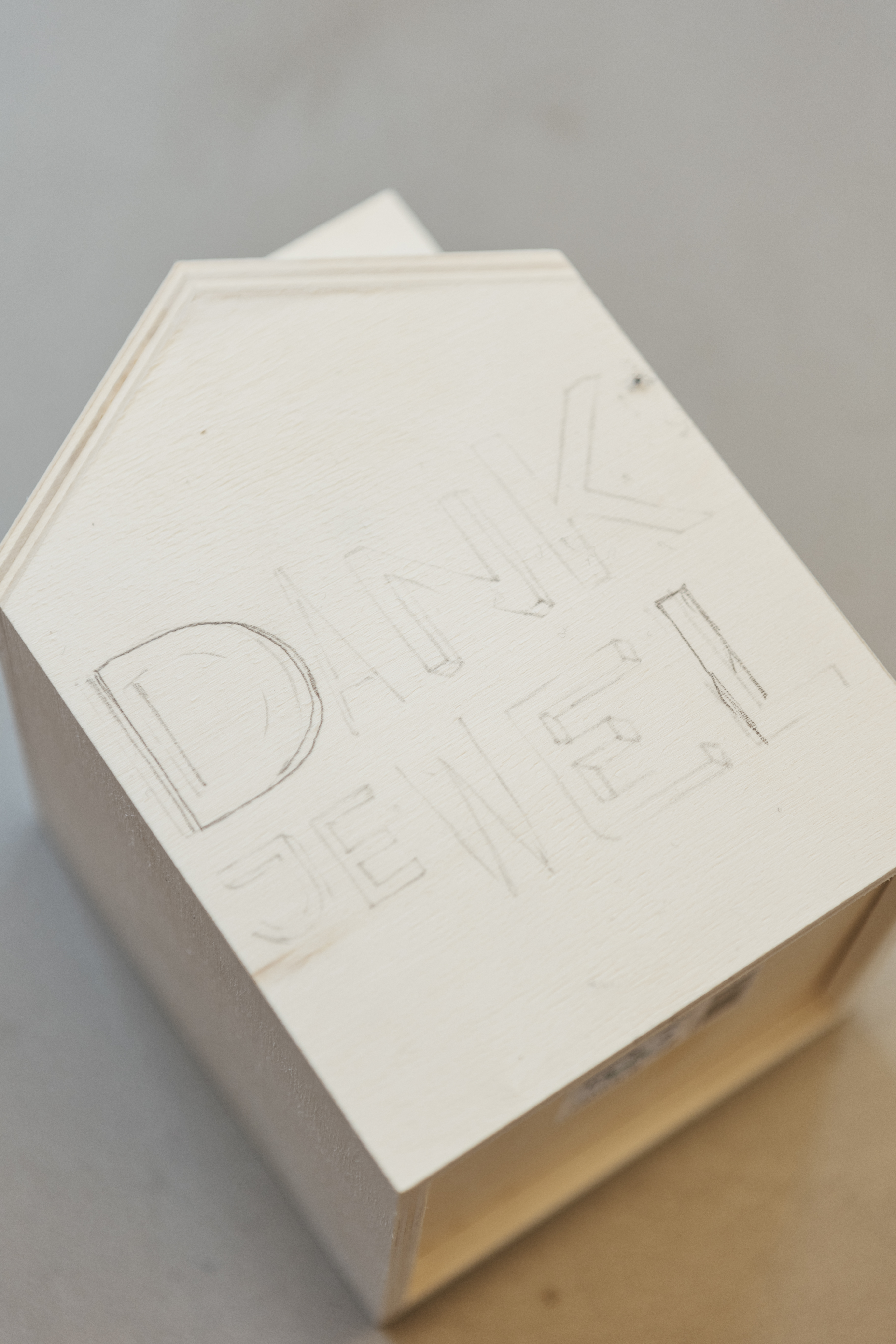 Kies een tekst of tekening die je wenst te puyrograveren op je doos. Zet die over met potlood op je doos.