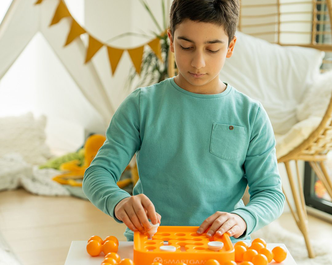 In 2023 lanceerde SmartGames een klein broertje in de succesvolle IQ-lijn: IQ Mini. Een innovatieve denkpuzzel in vijf hippe kleuren om echt overal mee naartoe te nemen.