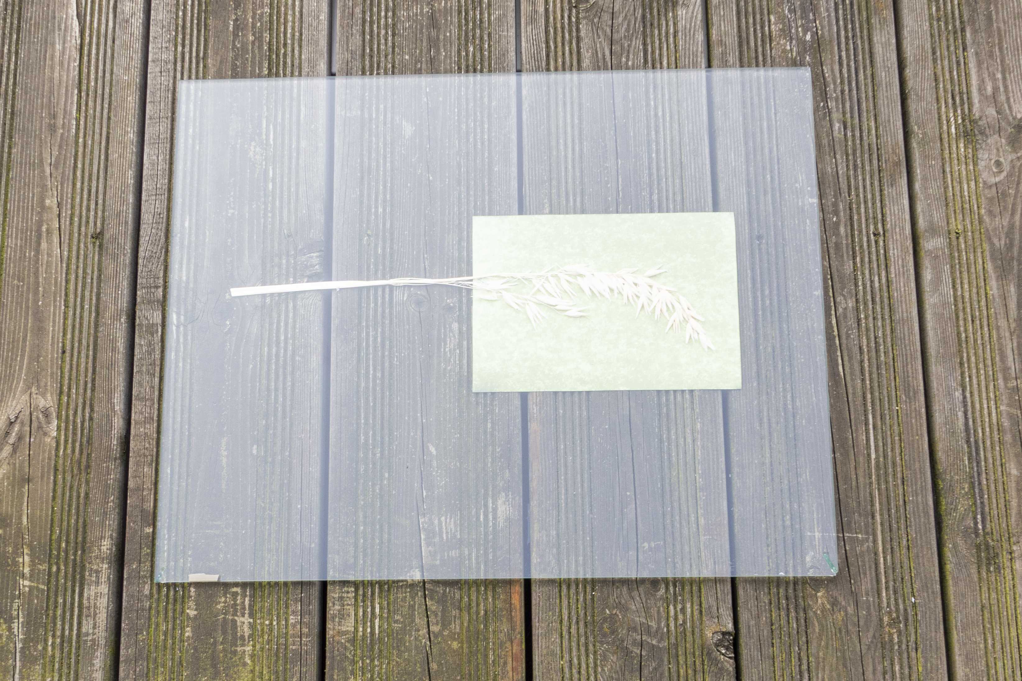 Laat het zonlicht nu zijn werk doen. Afhankelijk van de intensiteit van de zon heeft het papier 10 tot 30 minuten uv-licht nodig. Je kan beter wat langer belichten dan te kort.