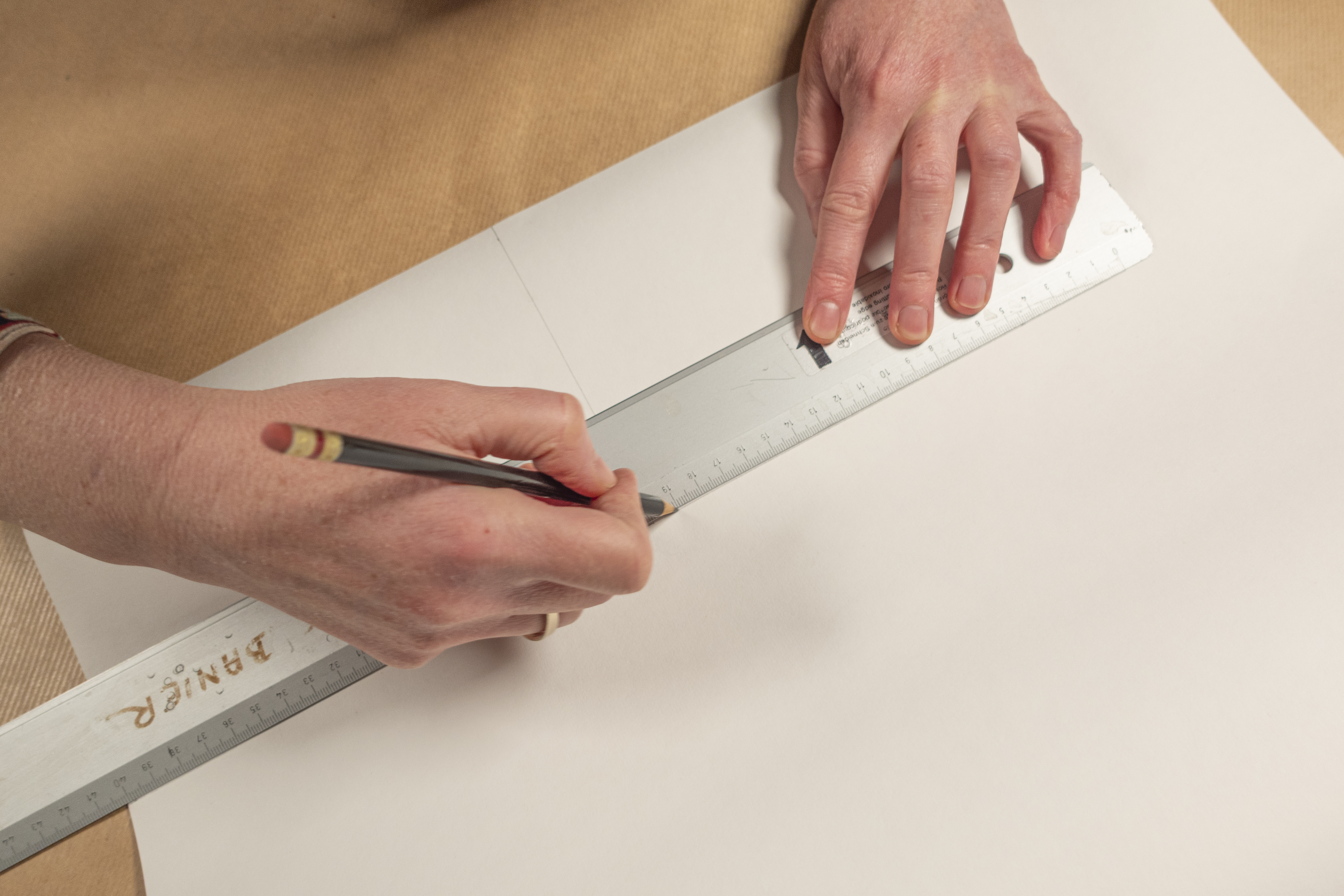 Knip 2 stukken Texipap-papier van 14 op 20 cm. Leg het op een kladpapier.
