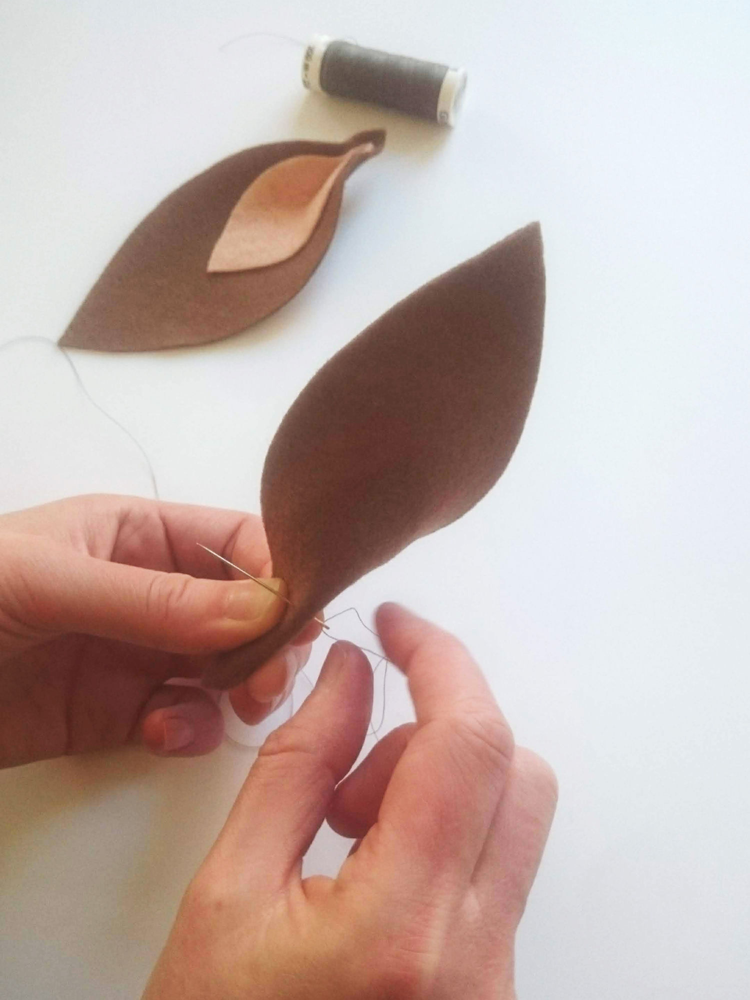 Naai langs de achterkant een klein neepje zodat het oor in een mooie vorm komt te staan.