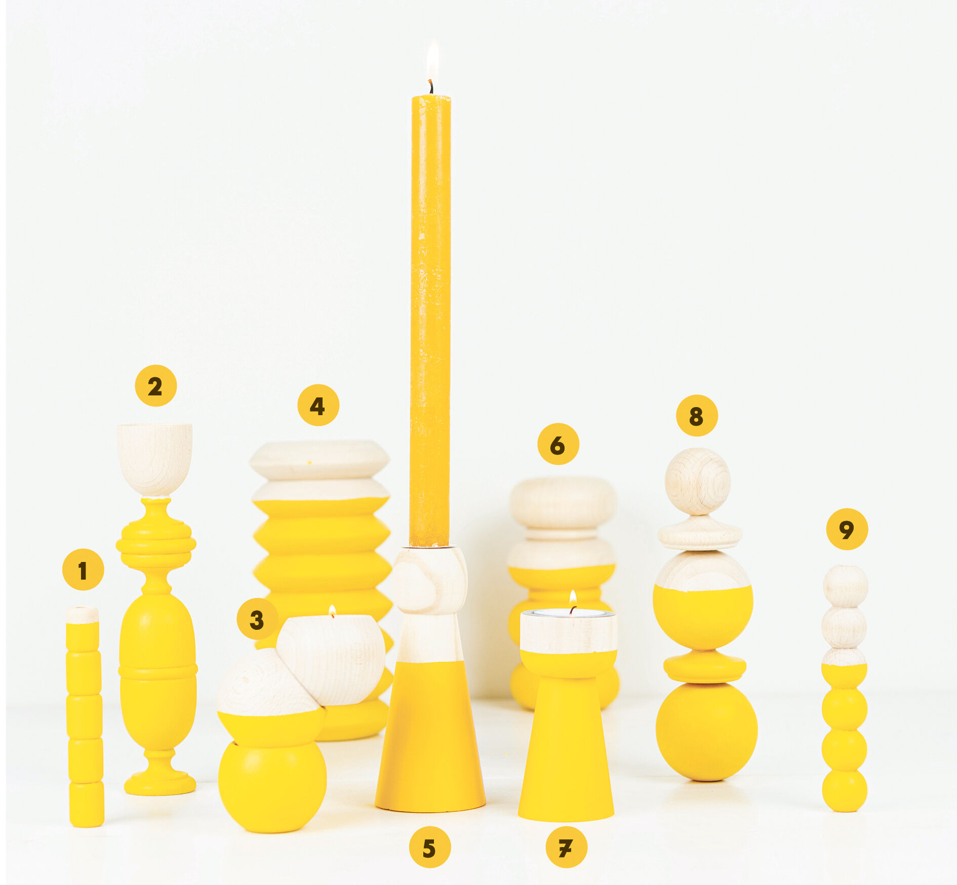 Met verf kan je ze verder personaliseren. Wij gingen voor de combinatie van hout met fris lentegeel.