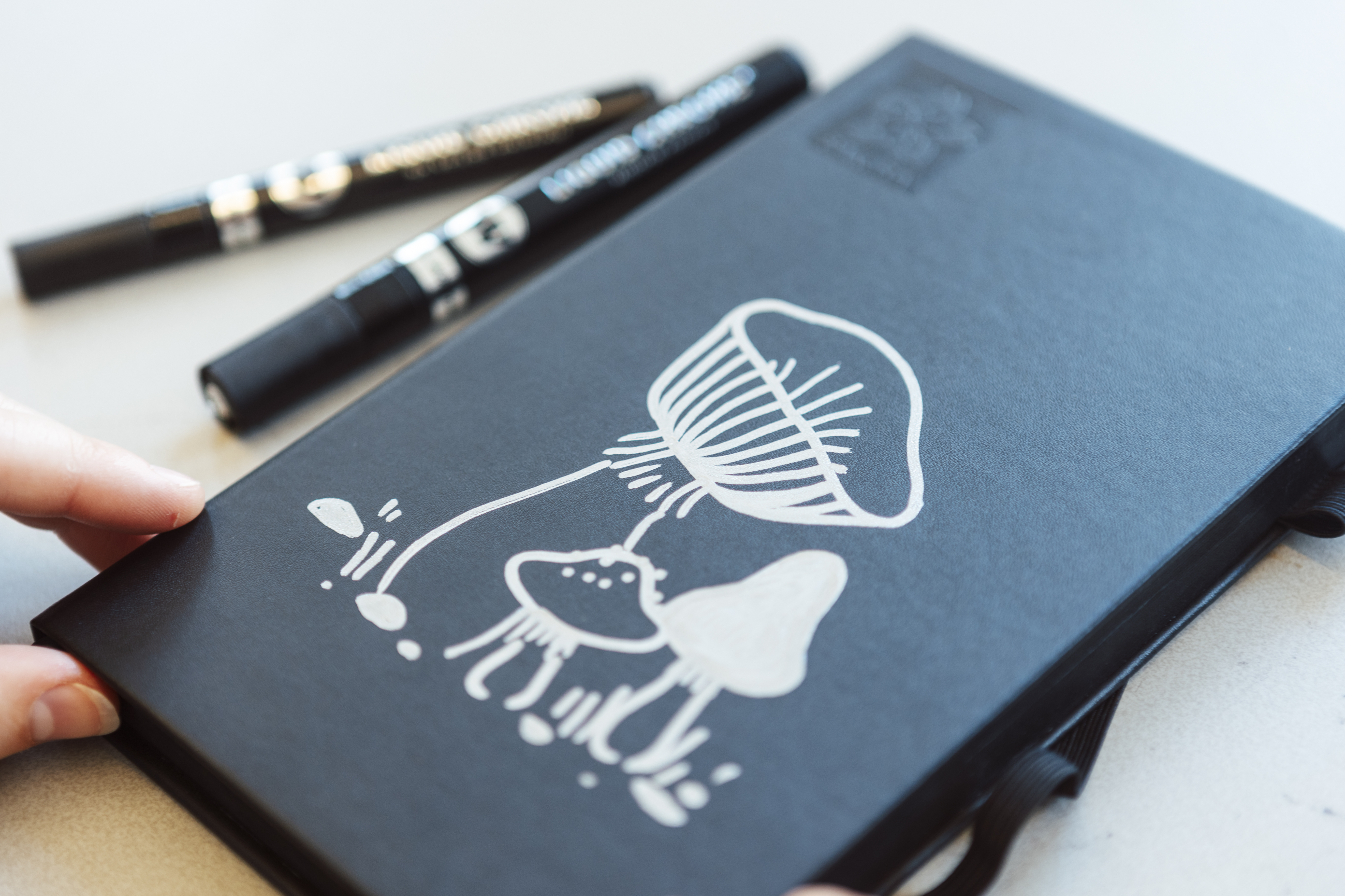 Maak je schetsboeken, tekenmappen, kaften ... persoonlijker door er op te tekenen met Molotow markers, Tipp-ex vloeistof, Liquid Chrome pennen ...