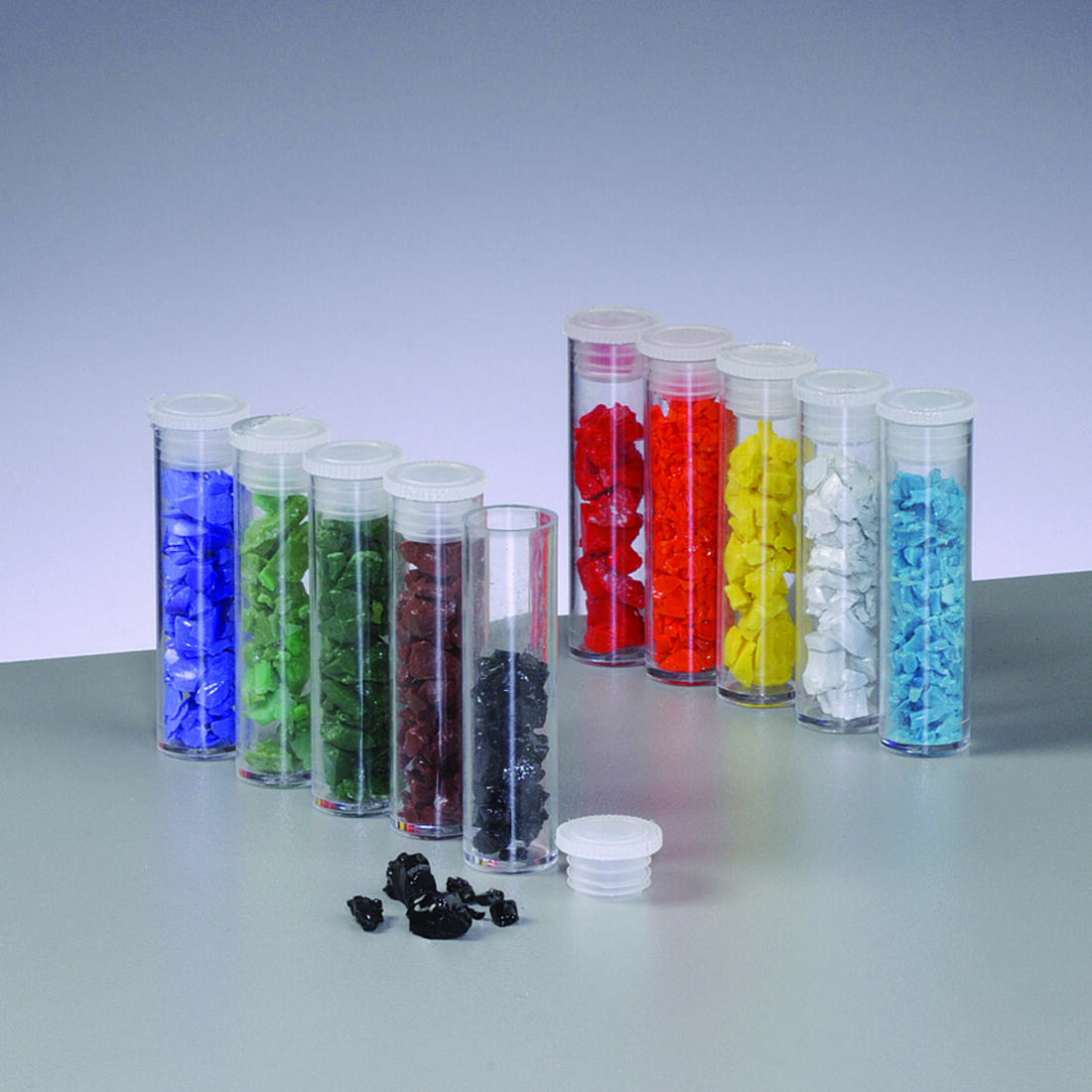 Stukjes opaak smeltemail in 10 verschillende kleuren. Ook verkrijgbaar in stukjes transparante smeltemail. Emailleren is een techniek, waarbij gekleurd glas wordt samengesmolten met metaal.