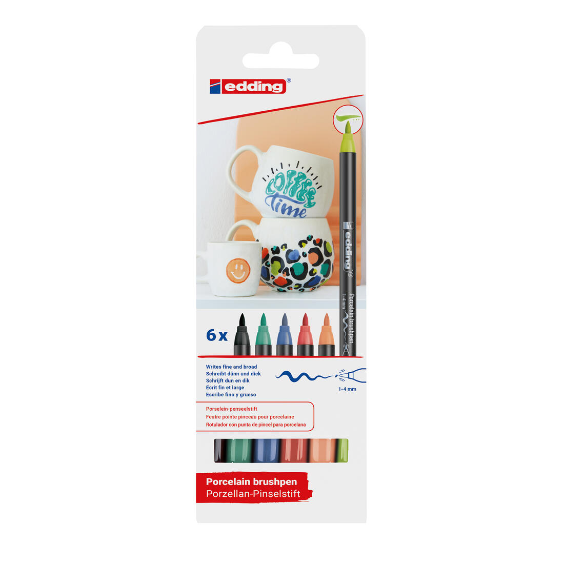 Edding porselein penseelstift 1-4 mm 6 stuks vivid