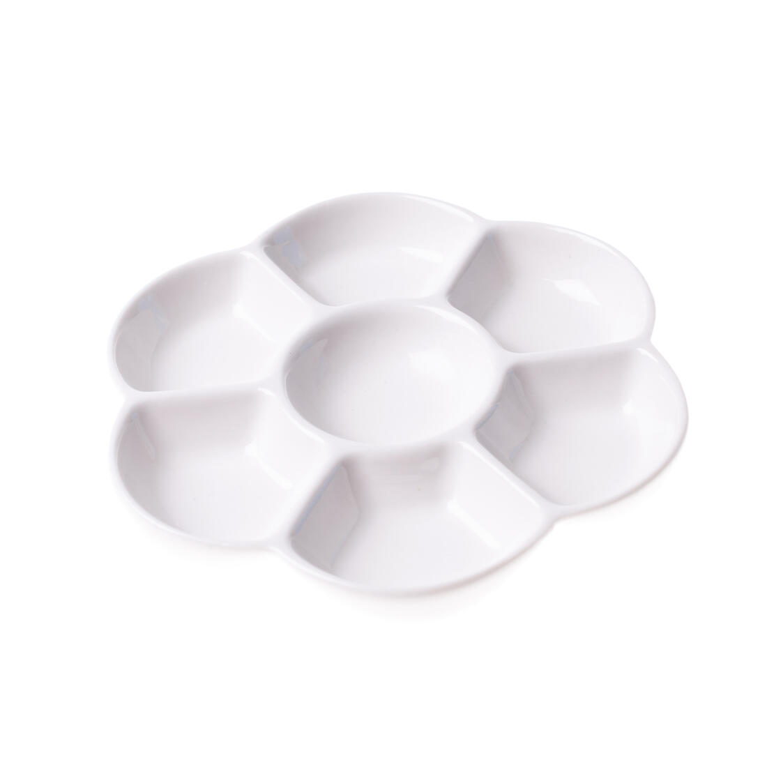 Mengschaal met 7 vakjes in keramiek om je favoriete kleuren in te maken tijdens het schilderen.