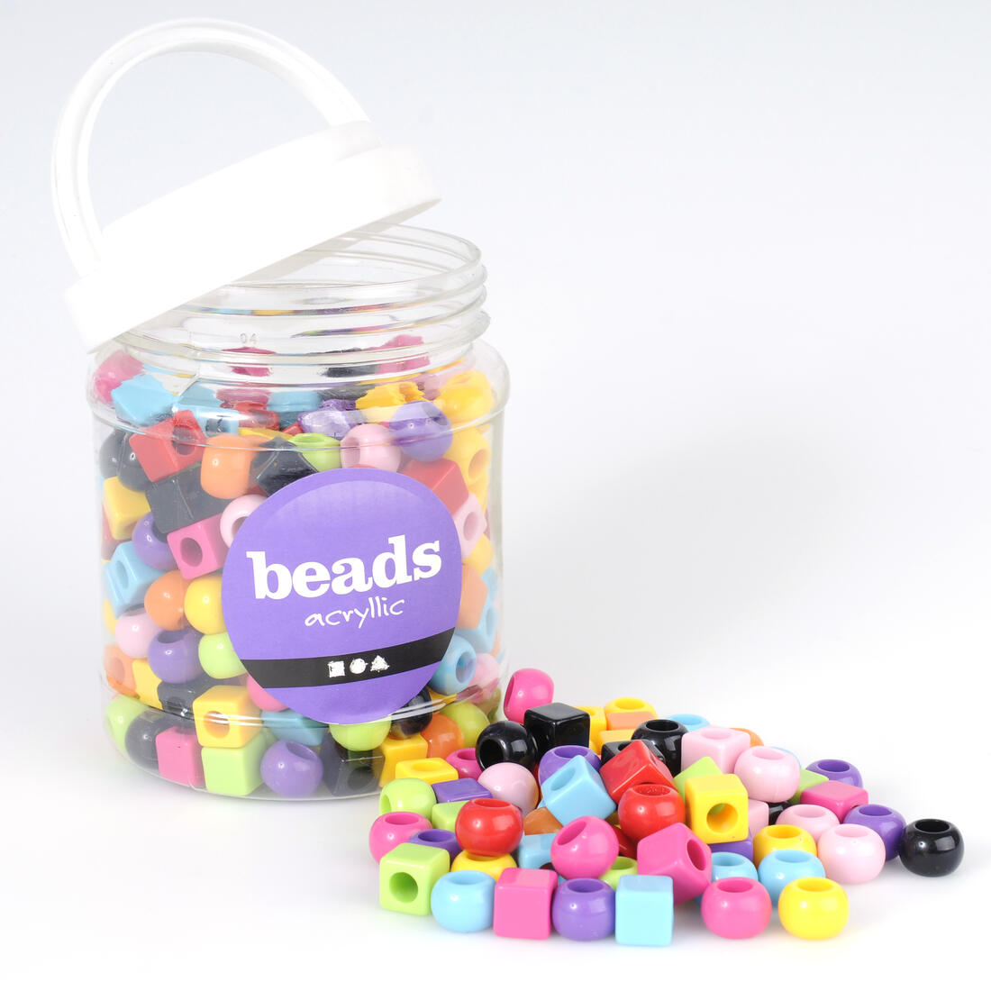 Multikleurige plastic kralenmix met groot gat. Pak bevat 2 designs: rond en vierkant inhoud: 1700 ml aan kralen van elk 11 mm diameter en met een gatgrootte van 7 mm