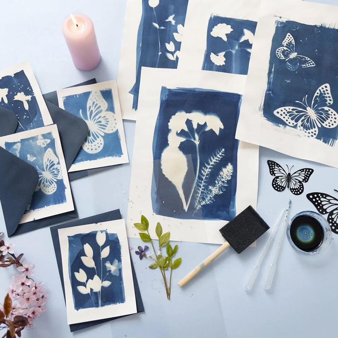 Hobbyset cyanotype textiel