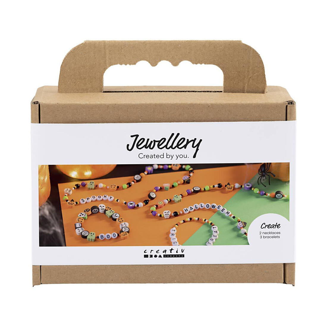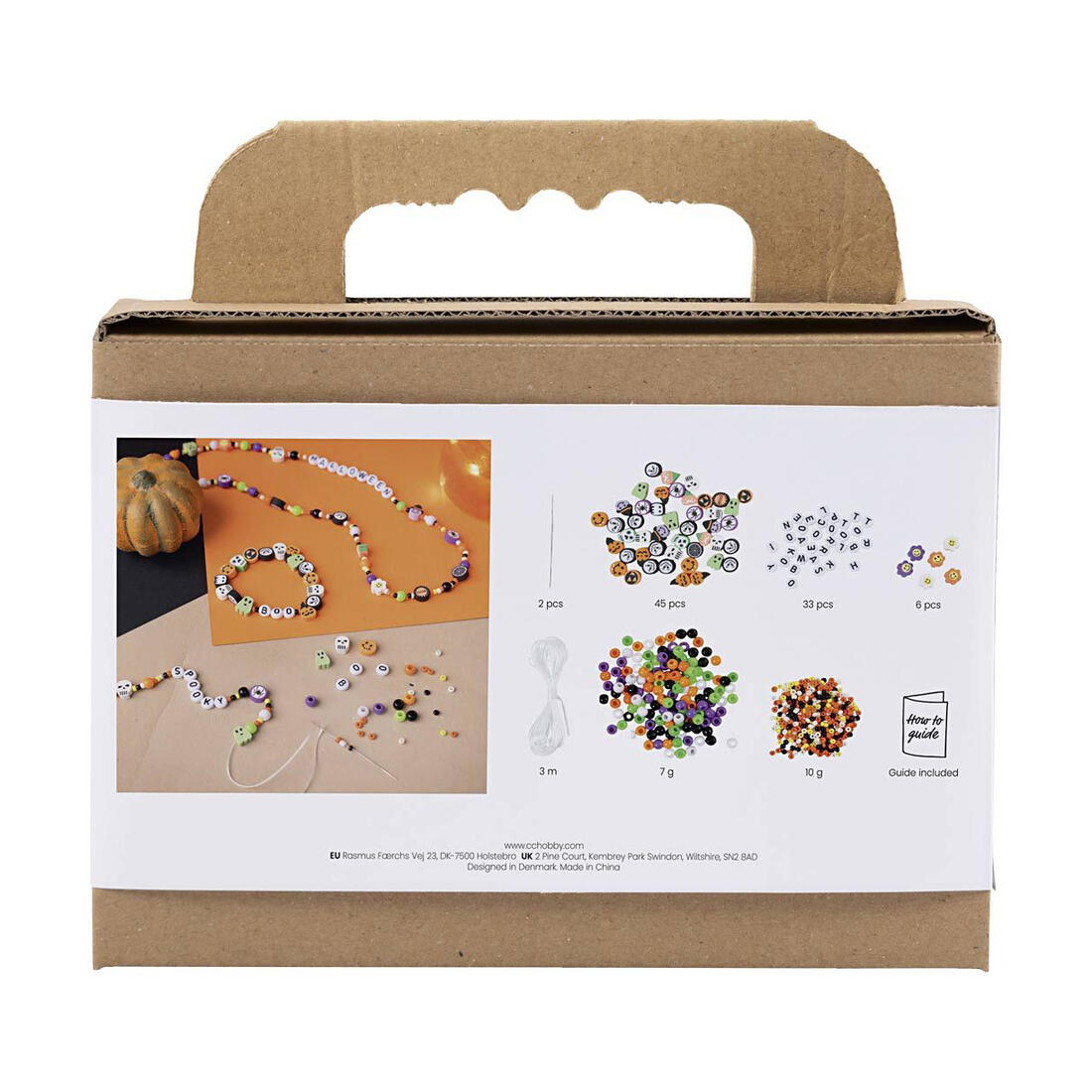 Met deze Creativity in a Box maken u en de kinderen echte sieraden in Halloweenstijl – vol met kralen, vormen en letters. Inclusief materiaal voor twee halskettingen, drie armbanden en alle instructies die u nodig hebt.