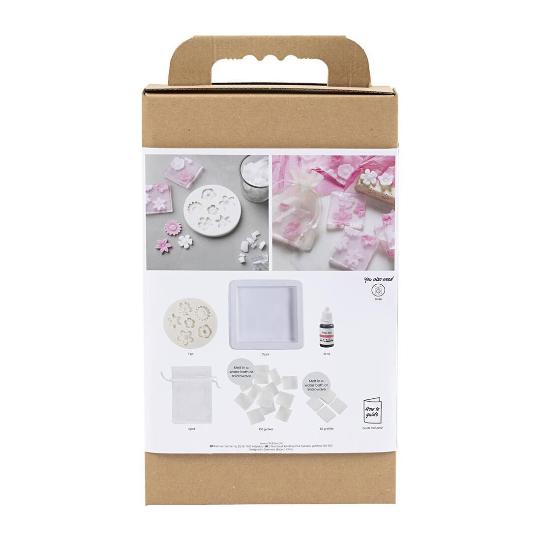 Met behulp van onze Creativity in a Box maakt u de prachtige stukjes zeep. Het proces is onvoorstelbaar eenvoudig. Smelt de gietmassa, voeg kleur toe en giet in vormen. Geniet daarna van het geweldige resultaat..