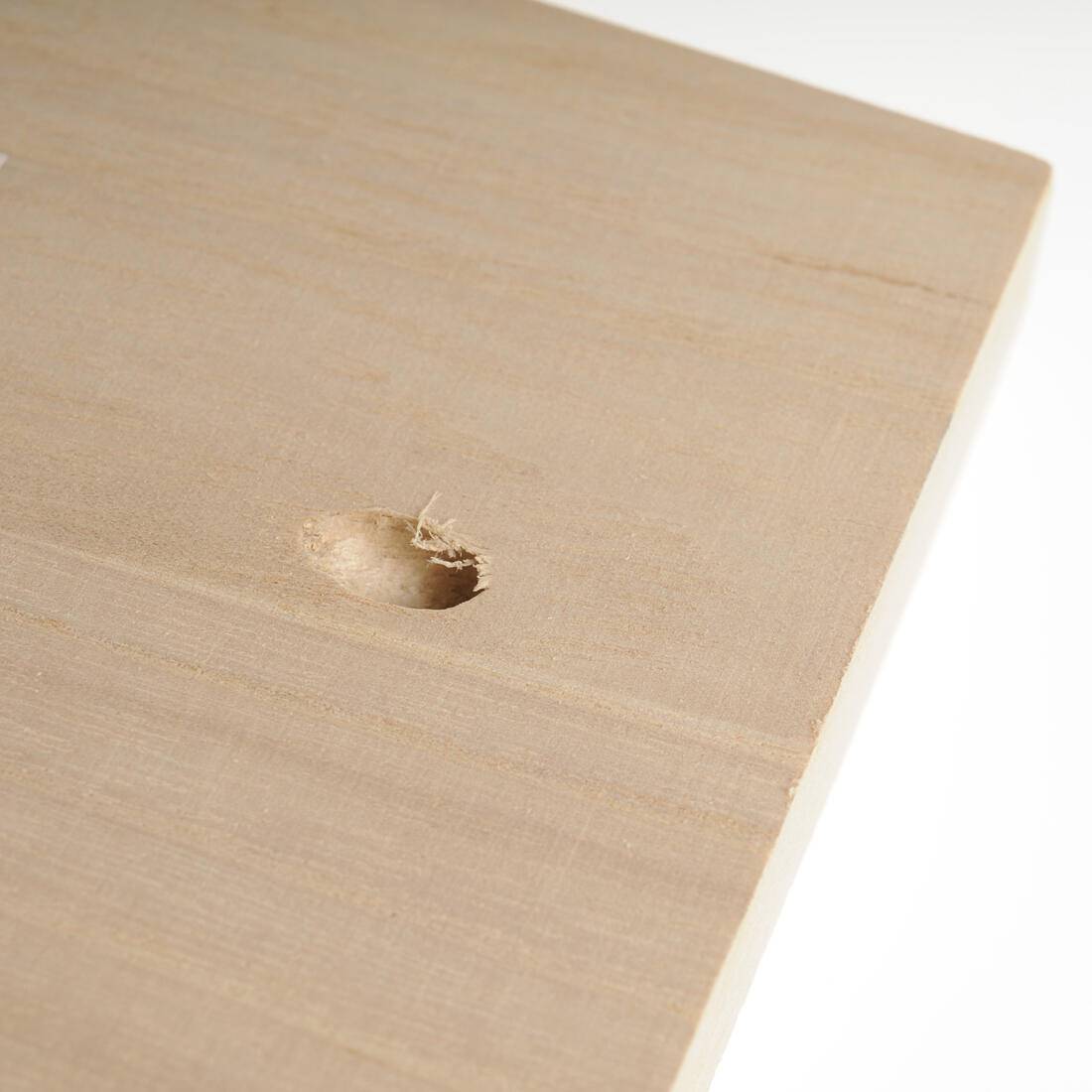 Zware houten plaat met glad oppervlak en overdwars gat om op te hangen