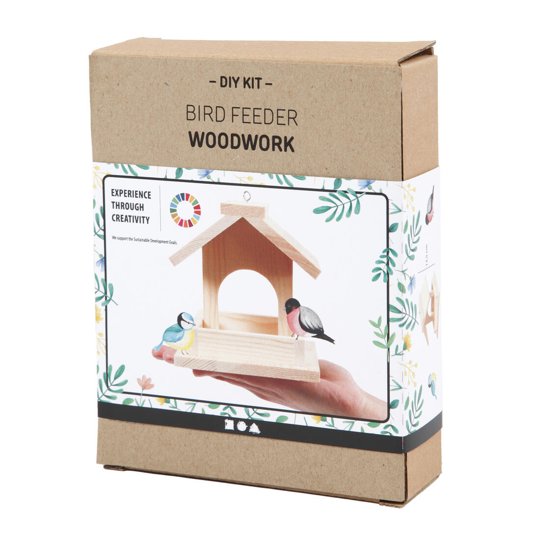 Materialenset voor het maken van een vogelvoederhuis van licht hout. Inclusief instructie