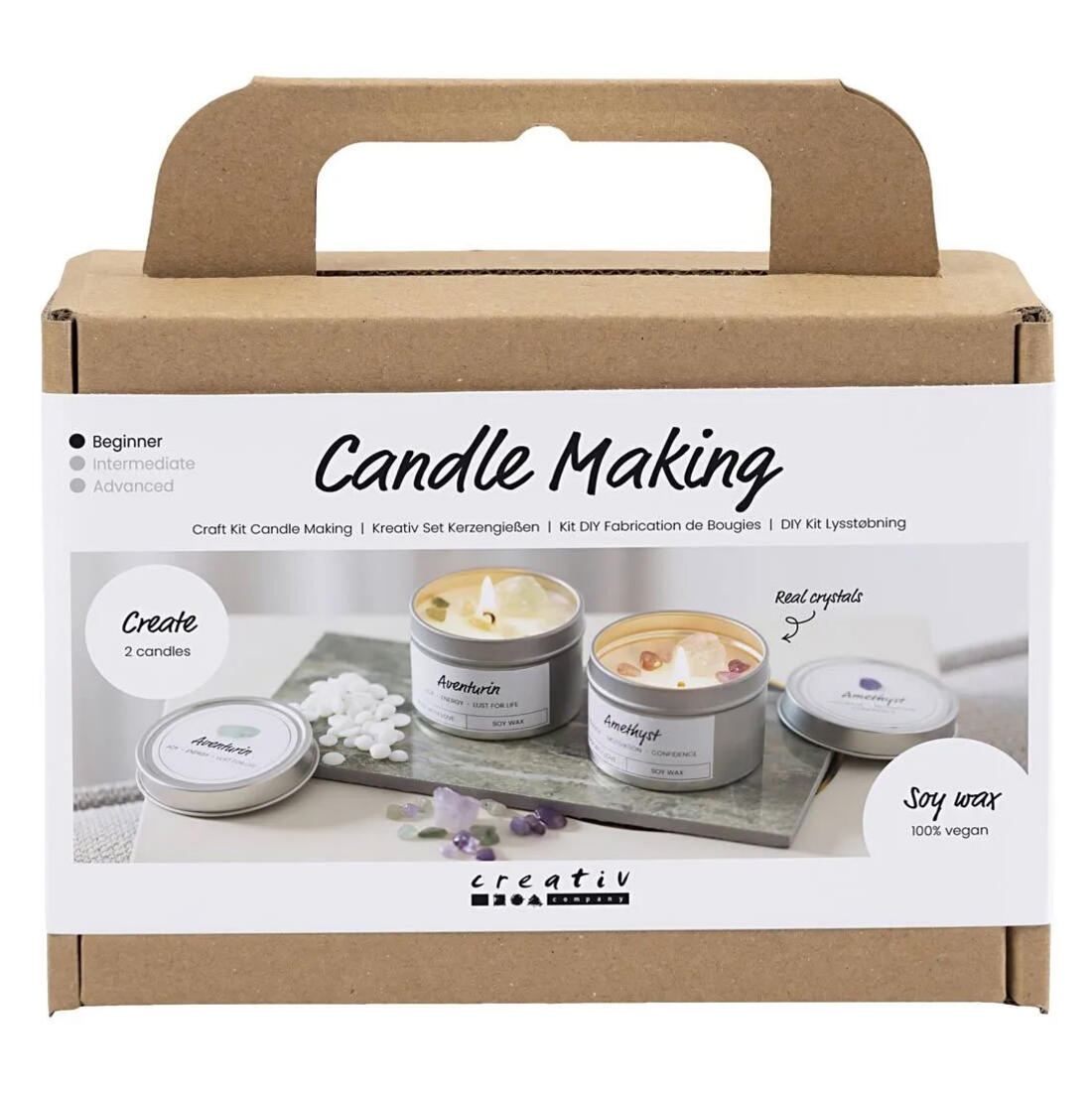 Met deze set maakt u twee sojakaarsen met echte kristallen die uw huis een unieke energie geven. De set bevat alle materialen en instructies die u nodig hebt.