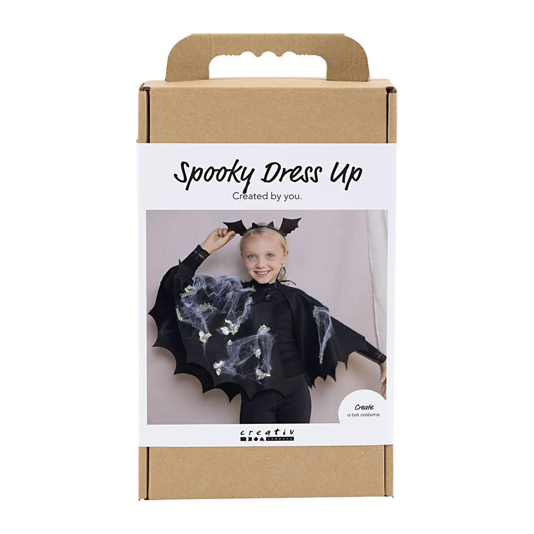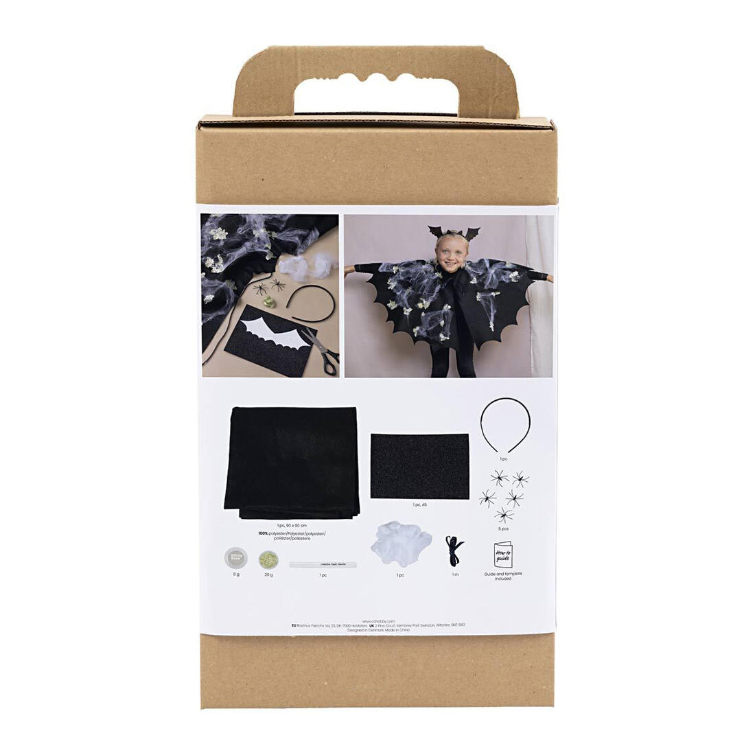 Vergeten om een Halloween-kostuum te kopen? Geen probleem! Met deze set kunnen u en uw kind eenvoudig een griezelig cool vleermuiskostuum maken – en dat is veel eenvoudiger dan u denkt. Open gewoon de set en volg de instructies. En het resultaat? Een zwarte vilten cape met spinnen, web en glitter clay en een hoofdband met oren en vleugels maken de look compleet..