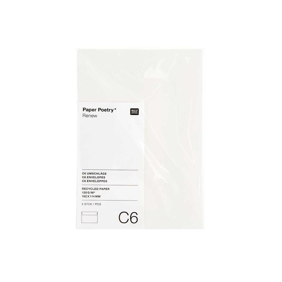 De Paper Poetry Renew-enveloppen in C6-formaat maken deel uit van de stationery-serie van Rico Design met gerecycled materiaal en zijn perfect voor het verzenden van wenskaarten, uitnodigingen en bedankkaarten in A6-formaat.