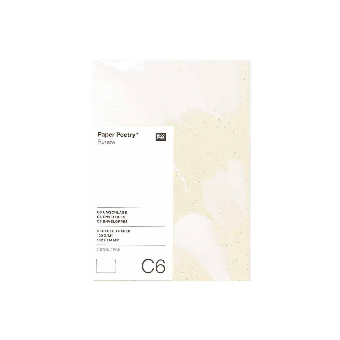 De Paper Poetry Renew-enveloppen in C6-formaat maken deel uit van de stationery-serie van Rico Design met gerecycled materiaal en zijn perfect voor het verzenden van wenskaarten, uitnodigingen en bedankkaarten in A6-formaat.