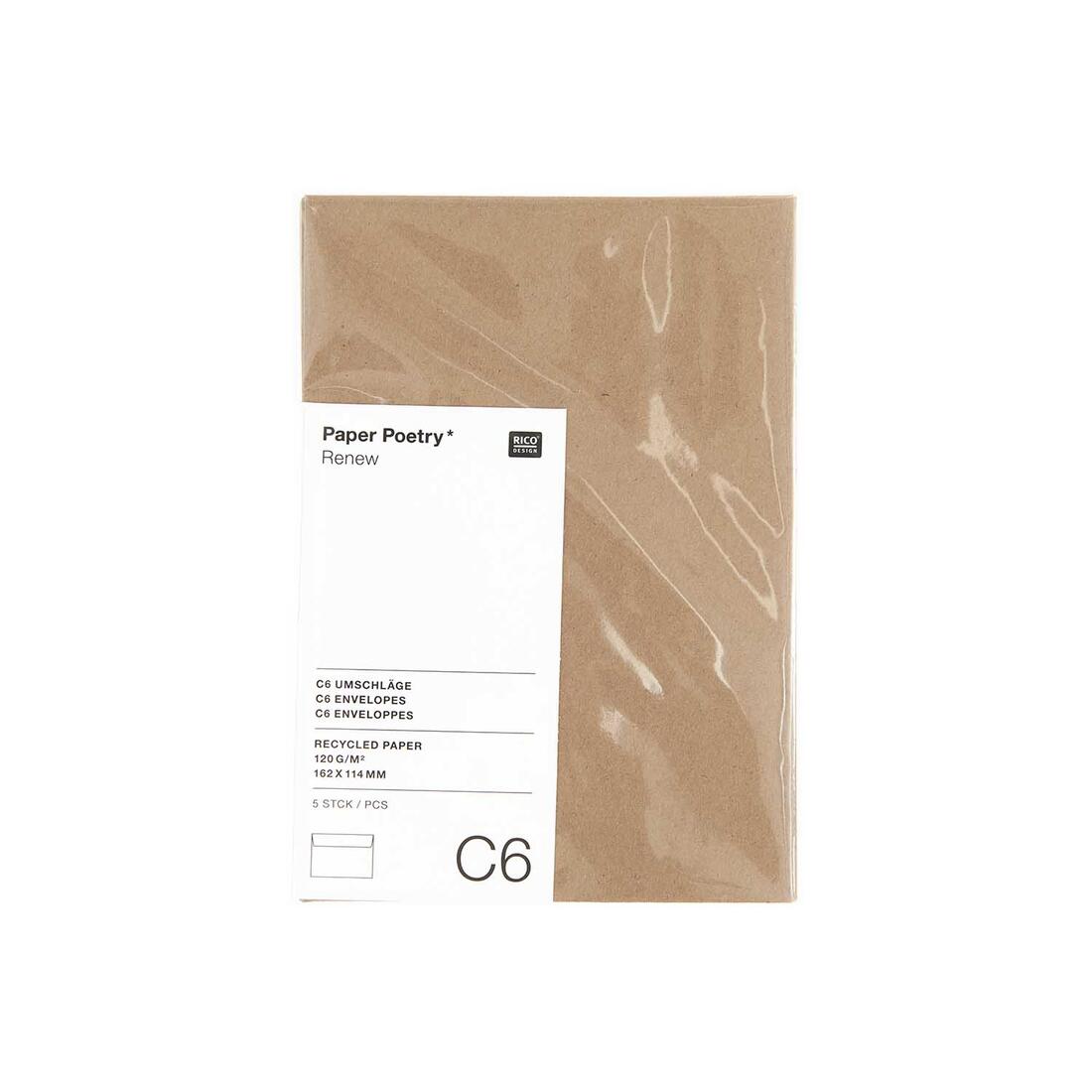 De Paper Poetry Renew-enveloppen in C6-formaat maken deel uit van de stationery-serie van Rico Design met gerecycled materiaal en zijn perfect voor het verzenden van wenskaarten, uitnodigingen en bedankkaarten in A6-formaat.