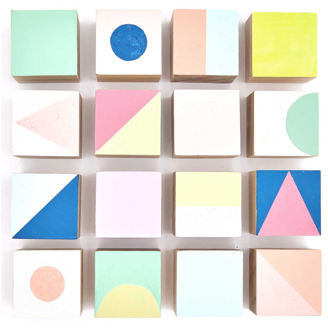 Maak je eigen spel met deze kleine houten vierkante blokjes.
