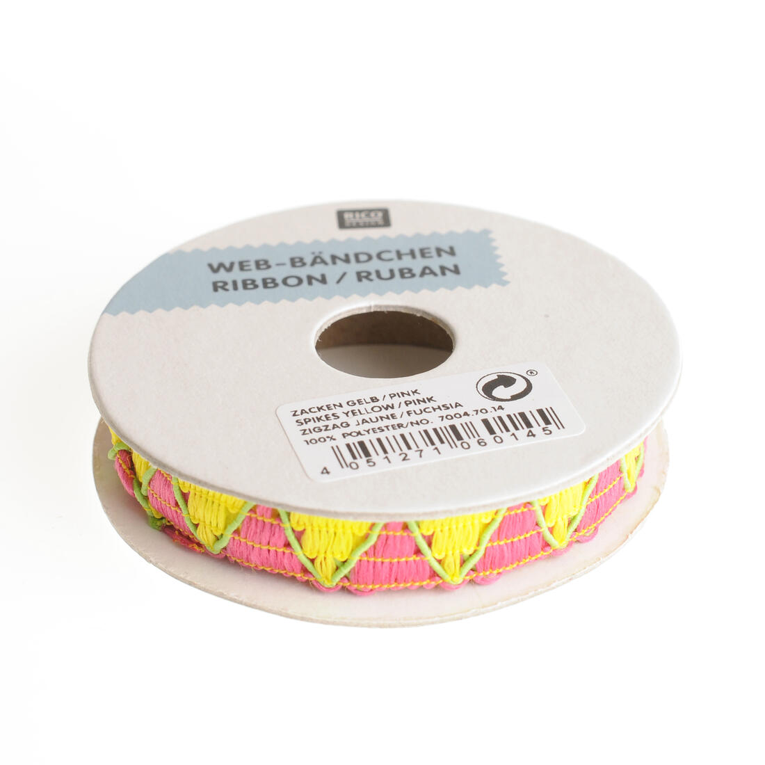 Rico Tropical Lint met zigzag 12 mm 2 m geel/pink