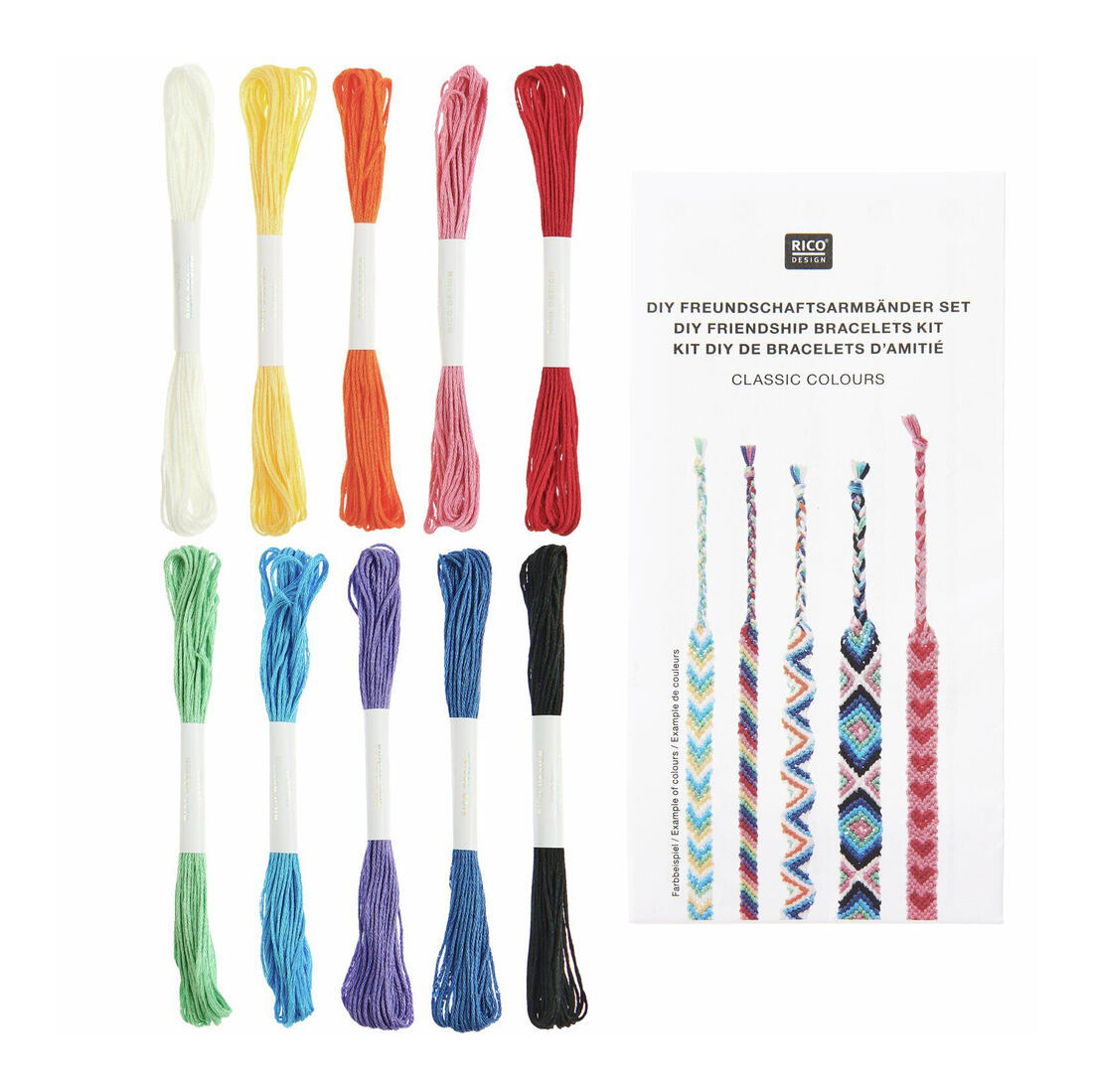 De DIY Classic Colours vriendschapsarmbandjesset bevat alle materialen die je nodig hebt om je eigen kleurrijke armbandjes te maken. Tien levendige kleuren 100% katoengaren bieden een veelzijdige basis voor verschillende patronen en kleurencombinaties. Met de meegeleverde instructies voor tien knooptechnieken kun je tot wel zeven armbandjes maken. Een aanvullende videotutorial maakt het gemakkelijk om aan de slag te gaan en biedt extra inspiratie voor creatieve ontwerpen.
