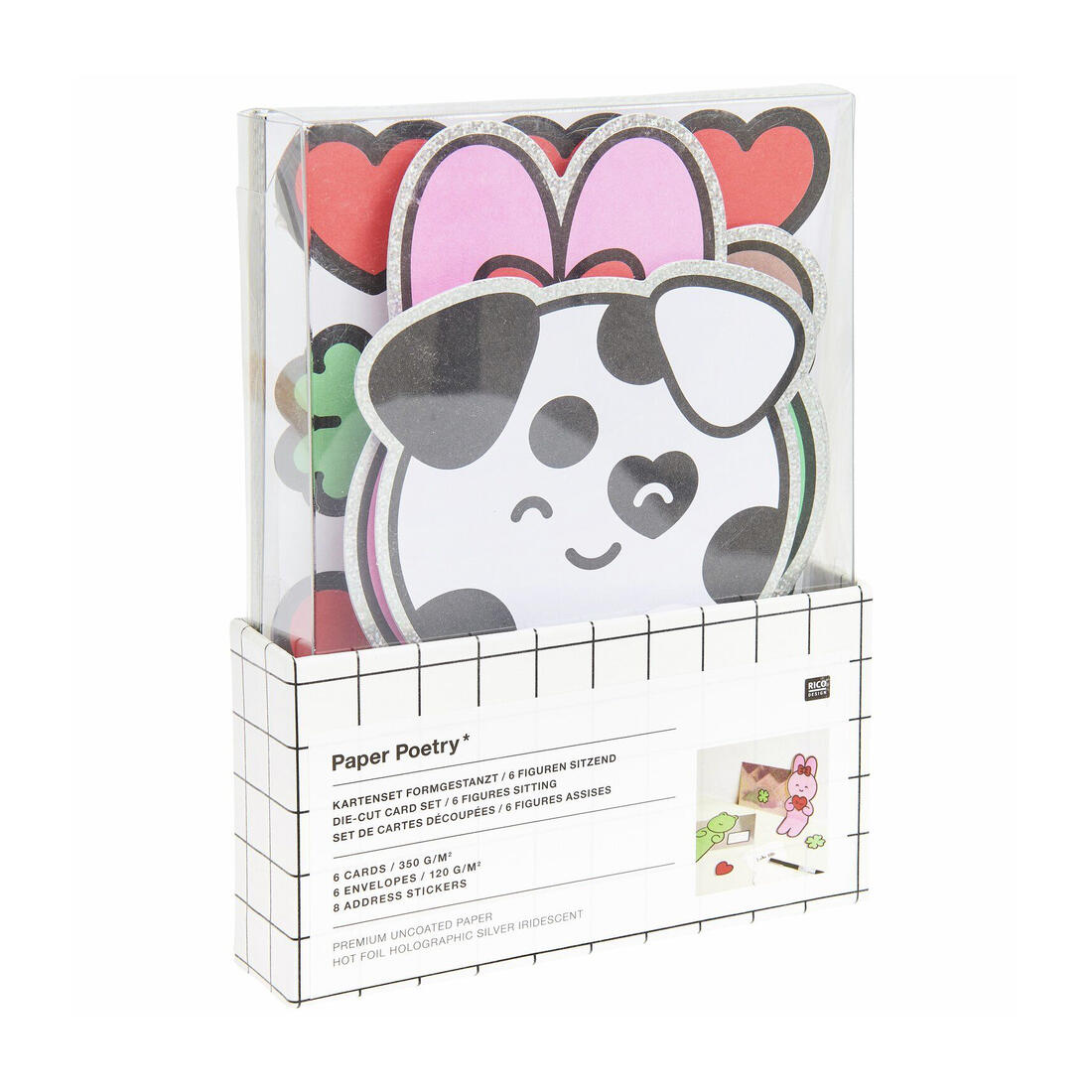 De Chingu-kaartenset in B6-formaat bevat zes kaarten die kunnen worden uitgebreid met extra losse onderdelen in de vorm van hartjes en klaverblaadjes. Elke kaart is gemaakt van stevig karton van 400 g/m², wat een solide basis vormt voor creatieve ontwerpen. De bijpassende enveloppen hebben een holografische zilveren afwerking, wat een glanzend accent toevoegt en de set harmonieus afmaakt.