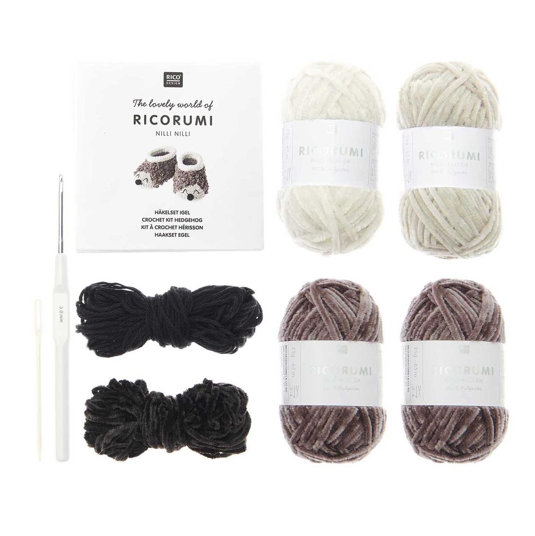Deze Ricorumi-set bevat alles wat je nodig hebt om de schattige amigurumi-figuur te haken: Creatief Ricorumi dk-garen in verschillende kleuren, haak- en naainaald en gedetailleerde instructies.