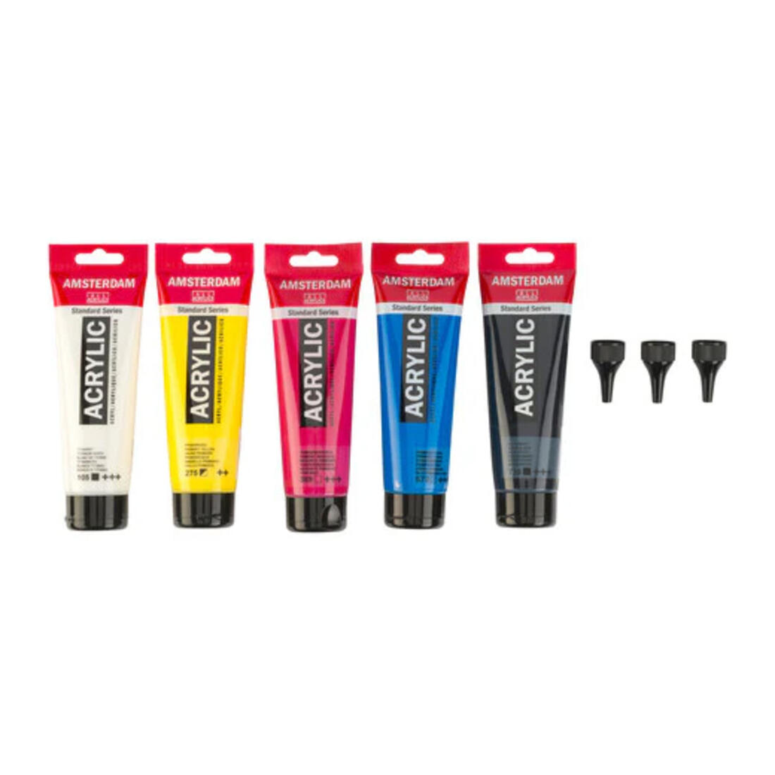 De set bevat ook 3 doseertuiten waarmee je de verf direct uit de tube kunt gebruiken of zeer nauwkeurig verf kunt mengen.