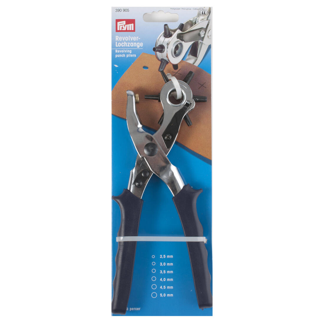 Een handige gaatjestang voor leder, folie, papier, enzovoort. Knipt zes diameters, van 2,5 mm tot 5 mm. Een onmisbaar item in je naaidoos.