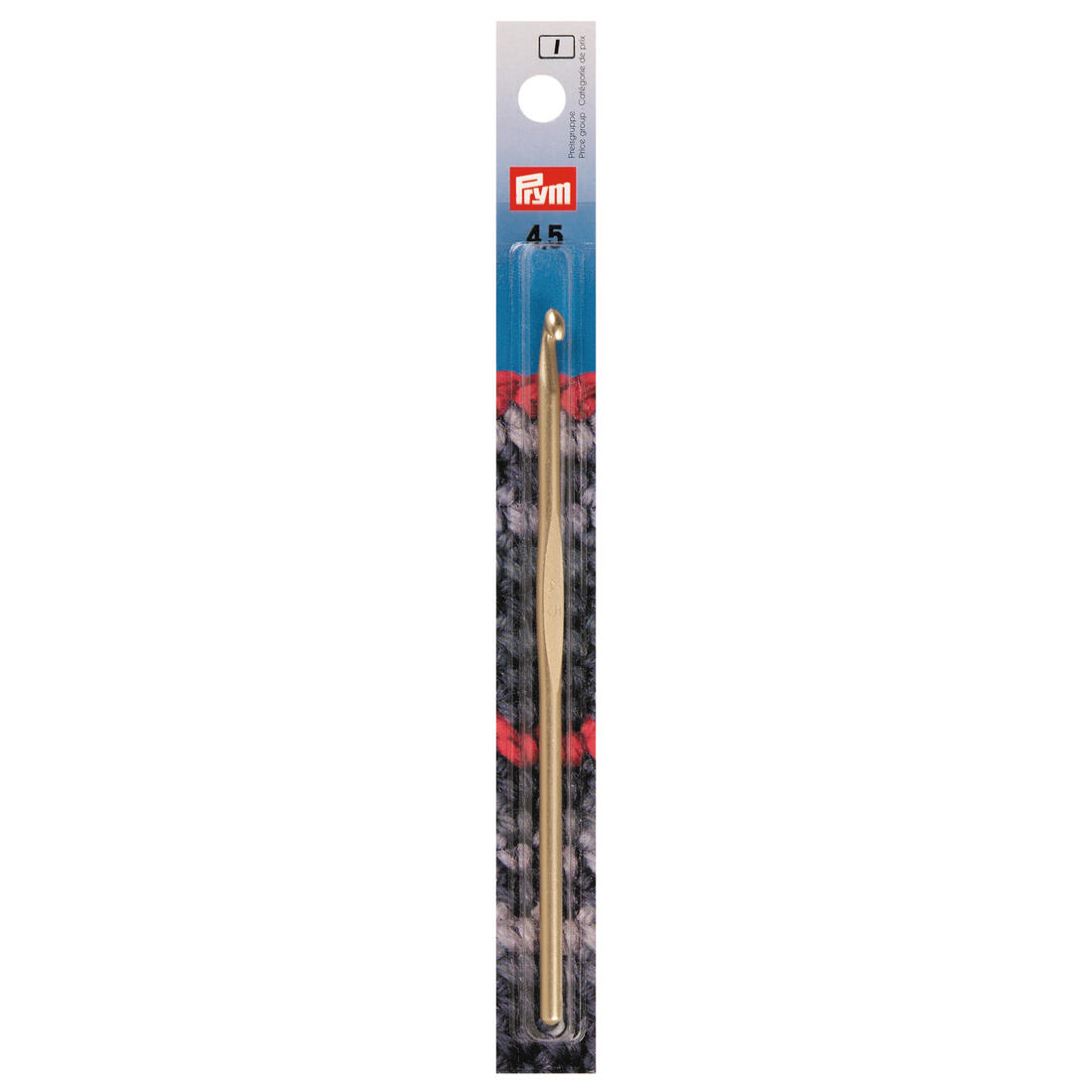 Zilverkleurige metalen haaknaald met duimsteun. Dankzij de handige vorm en gladde oppervlak ligt deze bijzonder goed in de hand. Omdat de haaknaald licht van gewicht is, is het mogelijk om grotere haakprojecten gemakkelijk uit te voeren. Verkrijgbaar in verschillende formaten.