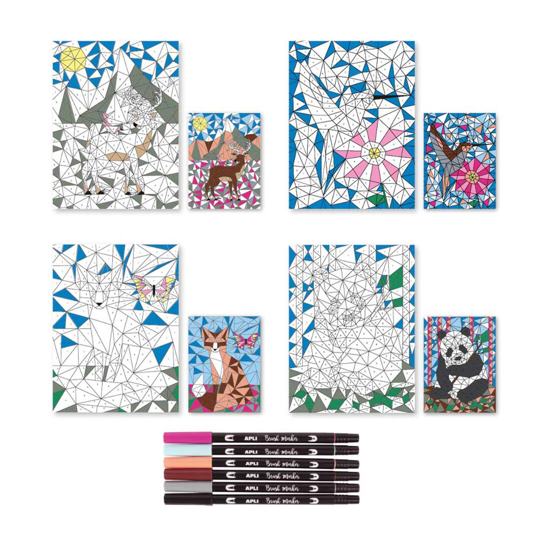 - Complete set: Bevat 4 kleuren-op-nummervellen, 6 stiften met dubbele punt, 4 voorbeeldvellen als visuele gids en duidelijke instructies.