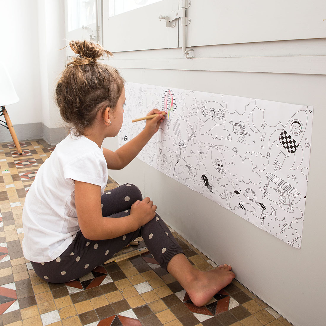 Met deze kleurplaat op rol breng je eindeloos kleurplezier in huis! Beschikbaar in 2 leuke thema’s: Transport en Snoepjesland. Elke rol is voorbedrukt in zwart-wit met speelse ontwerpen die klaar zijn om ingekleurd te worden. De rolletjes zijn 0,3 m breed en 4 meter lang, en hebben een herpositioneerbare lijmlaag, zodat ze eenvoudig op de vloer, meubels, muren en meer geplakt kunnen worden.