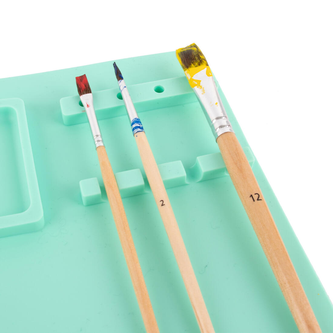 Met deze groene silicone knutselmat kun je zorgeloos schilderen, kleuren en knutselen – zonder rommel! De mat is antislip en anti-aanbakend, waardoor hij perfect is voor creatieve activiteiten met kinderen of kunstenaars. In de verpakking zit niet alleen de mat, maar ook een opvouwbare beker, ideaal om kwasten schoon te maken en je werkplek netjes te houden.