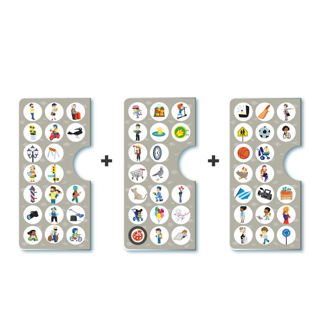 Bij de puzzel zitten 3 kaarten met telkens 19 zoekopdrachten.
