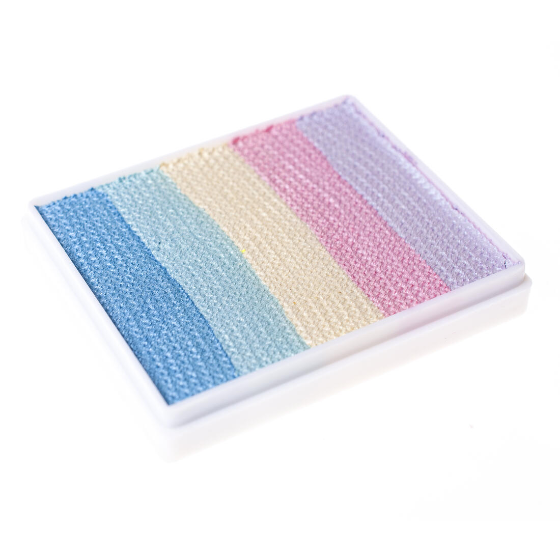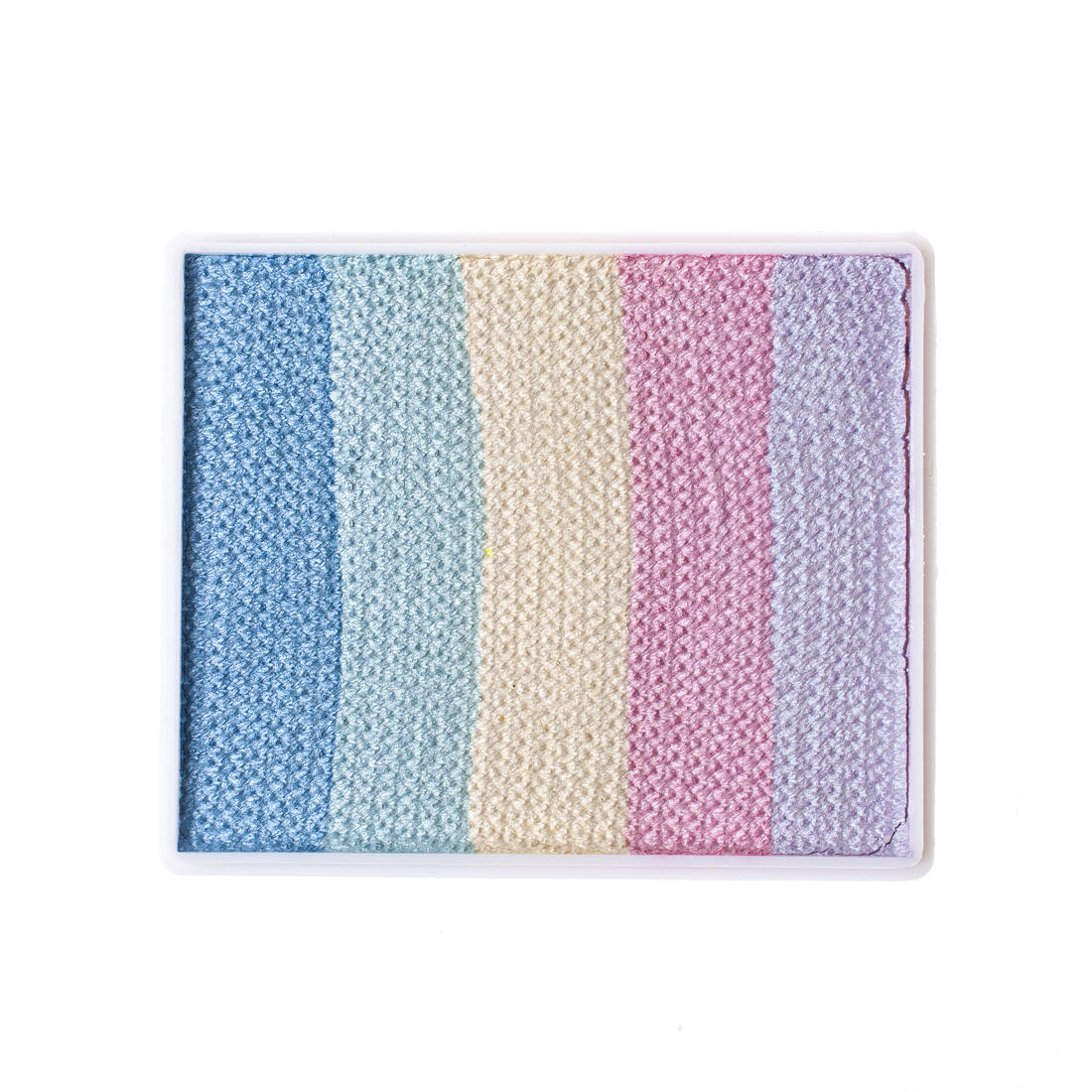 Rainbow cakes zijn eenvoudig te gebruiken voor het maken van veelkleurige ontwerpen met slechts een paar penseelstreken. Ideaal voor verjaardagsfeestjes, festivals en andere feesten, vooral om snel kleurrijke ontwerpen voor kinderen te maken. Gebruik een nat penseel of vochtige spons. Verwijder de schmink van de huid met een milde zeep en koud tot lauw water.