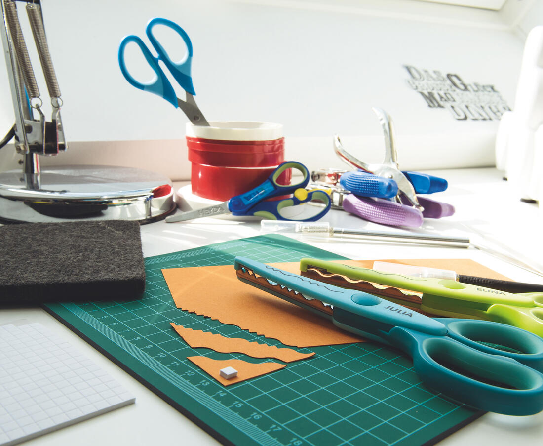 Geïntegreerd naamlabel om de schaar te personaliseren en borgveer om te leren knippen.
