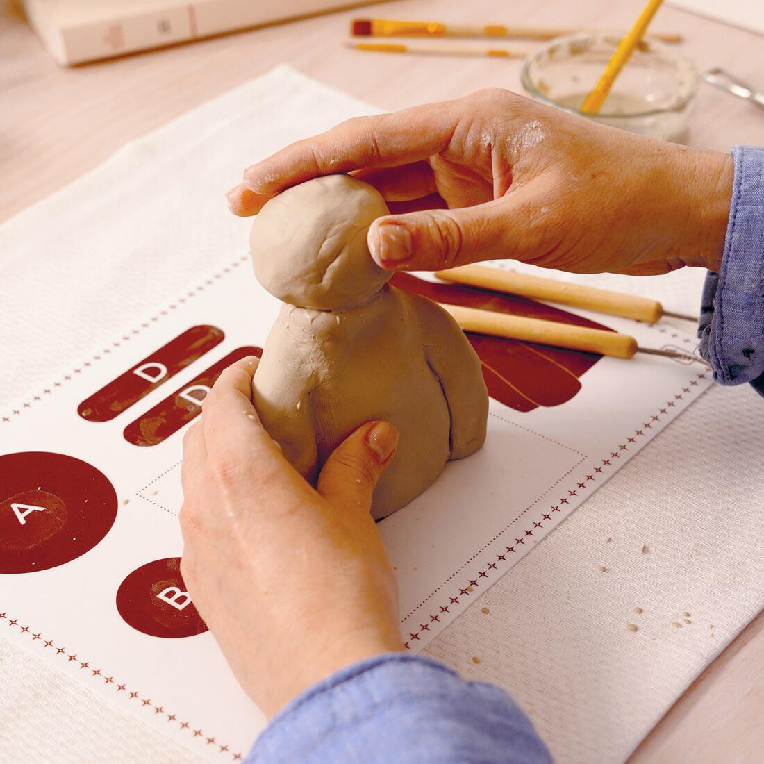 Bij boetseren wordt klei bewerkt met de handen en gereedschappen van professionele beeldhouwers om volumes, texturen en unieke vormen te creëren. Er wordt met echte klei gewerkt: deze laat je aan de lucht drogen, hoeft niet gebakken te worden en kan daarna beschilderd worden. Je leert hoe je een geboetseerd kunstwerk maakt, waarbij je bewegingen, holtes en reliëfs onderzoekt om je beer vorm te geven.