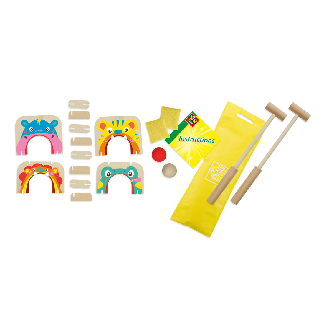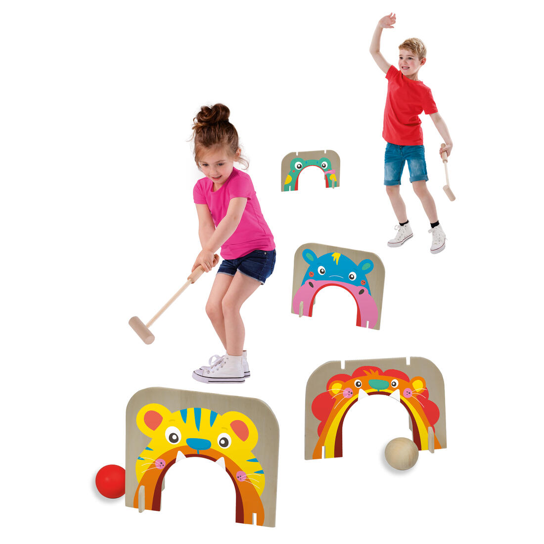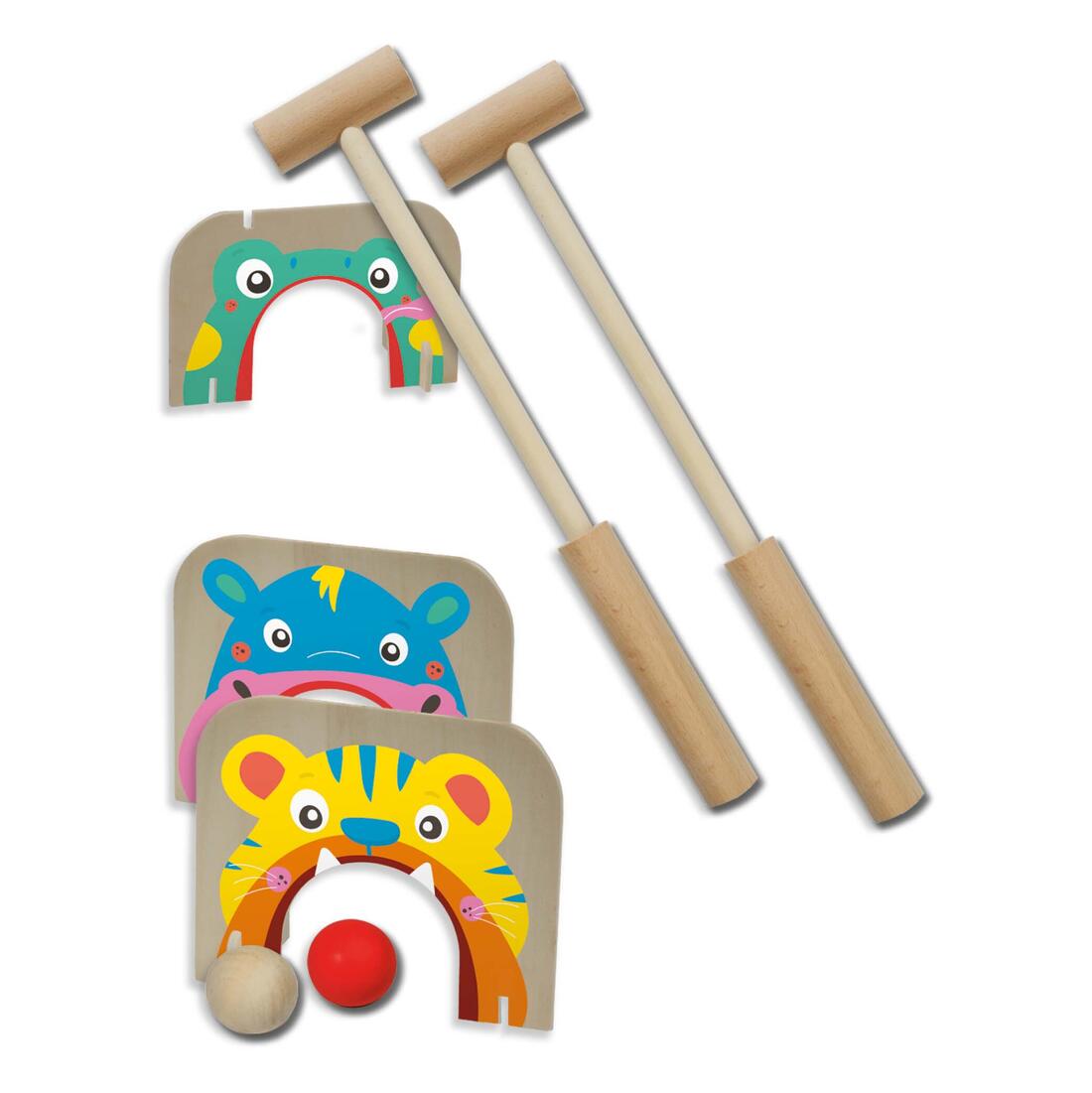 Het is tijd voor Croquet! Zet de halve poortjes op het veld neer en sla de bal met behulp van de stick er doorheen.
