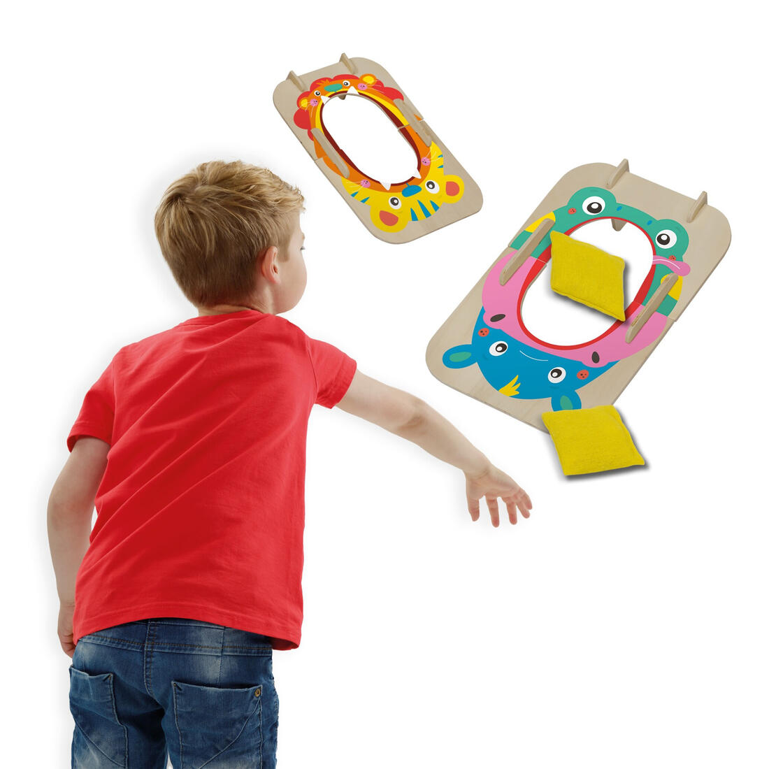 Klaar met spelen? Je koppelt eenvoudig twee poortjes aan elkaar tot een doel, met gat om de pittenzakjes in te gooien.