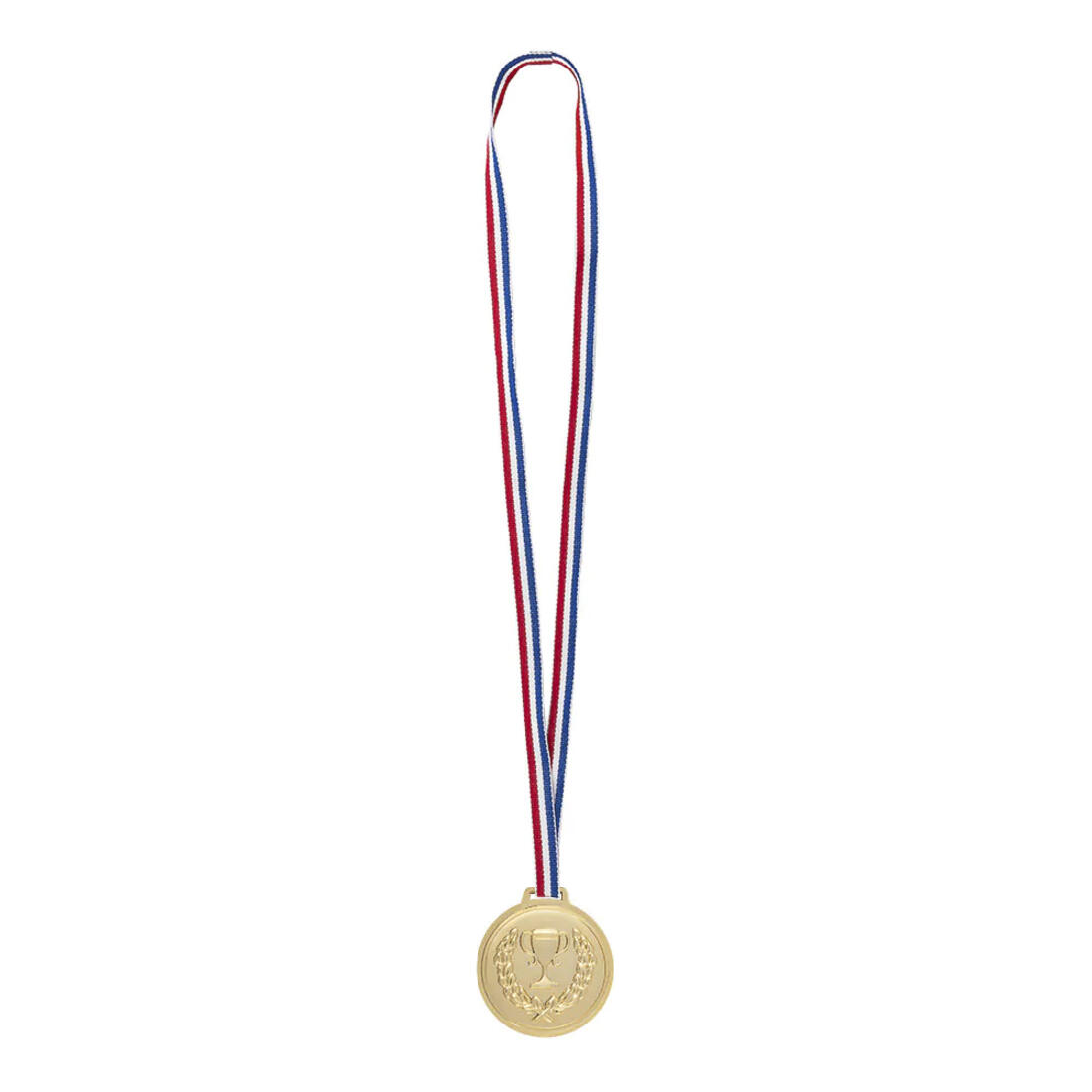 De medailles zijn uiteraard niet echt in edelmetaal, maar dat maakt het gebaar en het geluk van de winnaar van de gouden medaille er niet minder om.