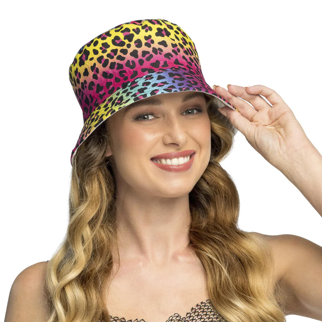 Festivalhoedje met een luipaarddesign in vrolijke kleuren.