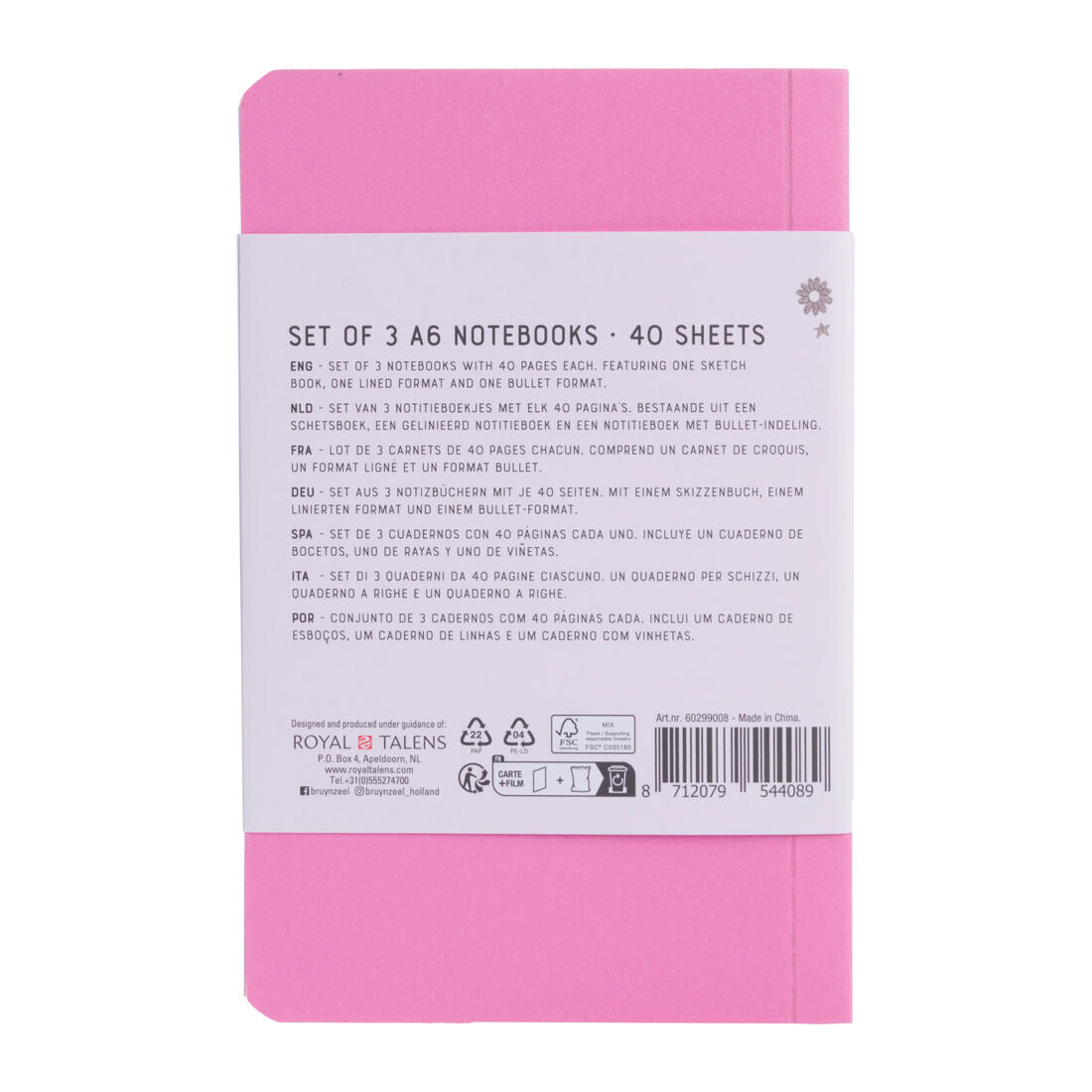 Laat je creativiteit sprankelen met de Bruynzeel A6 Notitieboek Set van 3 – speciaal ontworpen voor creatieve tieners! Deze levendige set bevat drie mini-notitieboeken in lila, felroze en lichtroze, elk met een subtiele glitterafwerking.