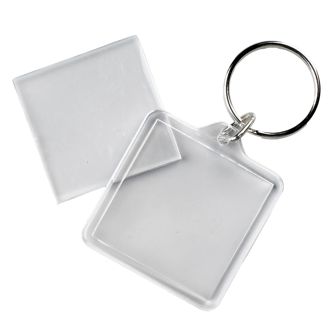Sleutelhanger 2-delig transp. vierkant 40 x 40 mm