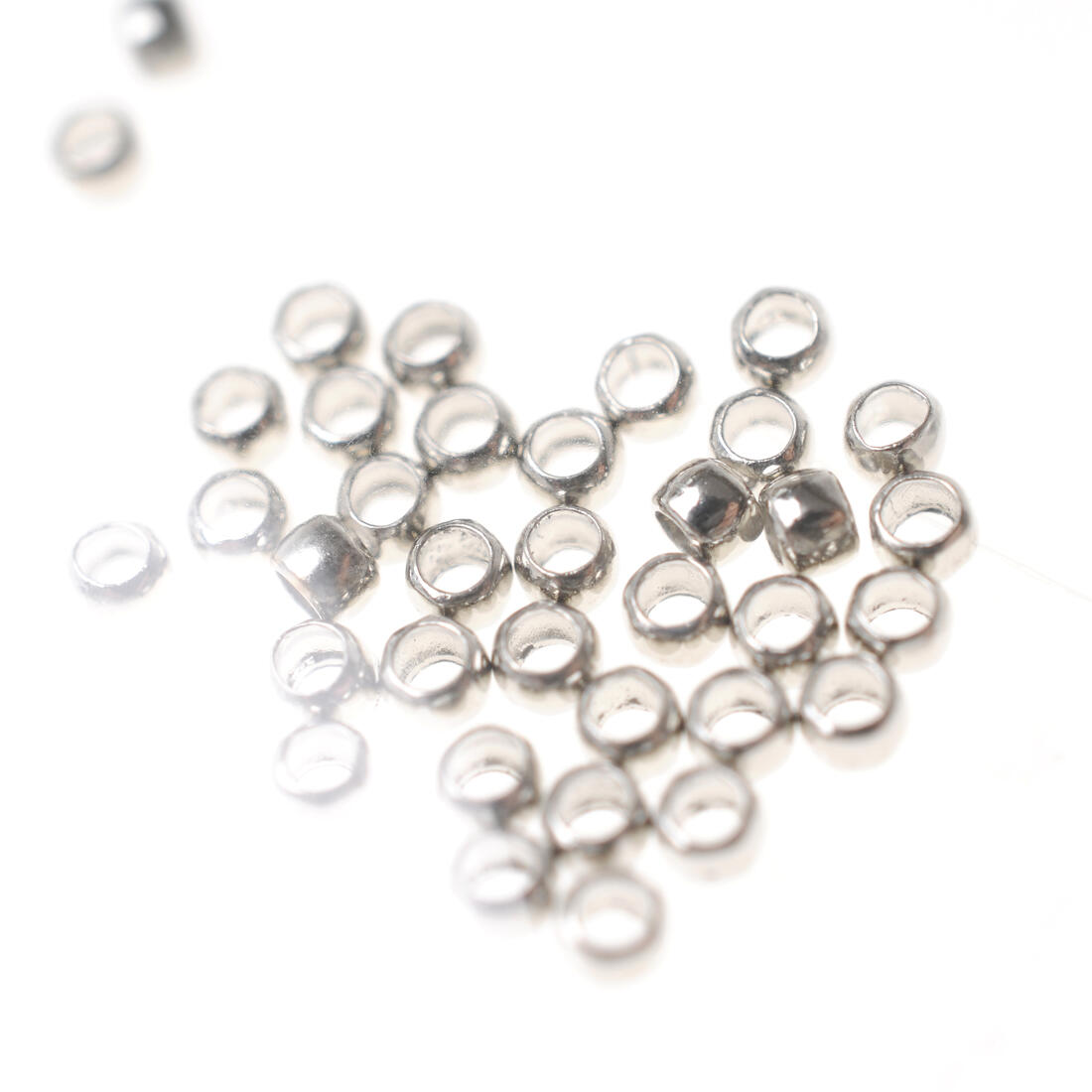 Gebruik de knijpkralen wanneer u sieradenkralen op een specifieke plek aan draad of nylon wilt bevestigen. Rijg hiervoor respectievelijk voor en achter elke kraal (of een groep kralen) een knijpkraal. Gebruik een platbektang om de knijpkralen zo strak in te drukken dat ze niet meer wegglijden.