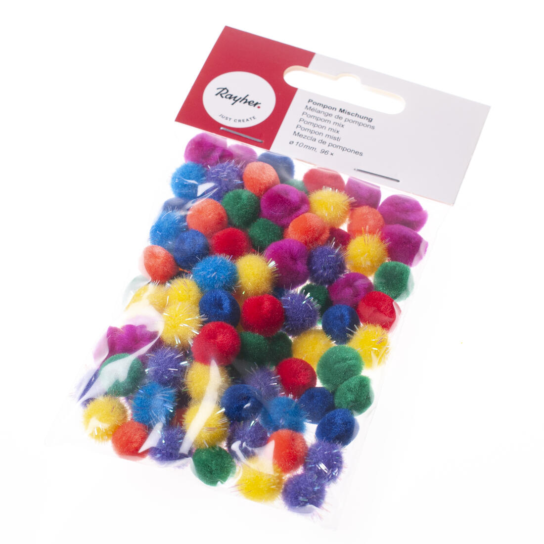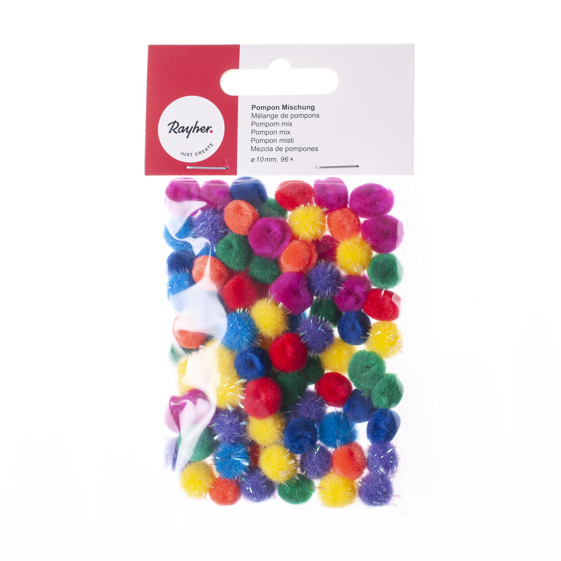 Pompon 10 mm 96 stuks regenboog mix