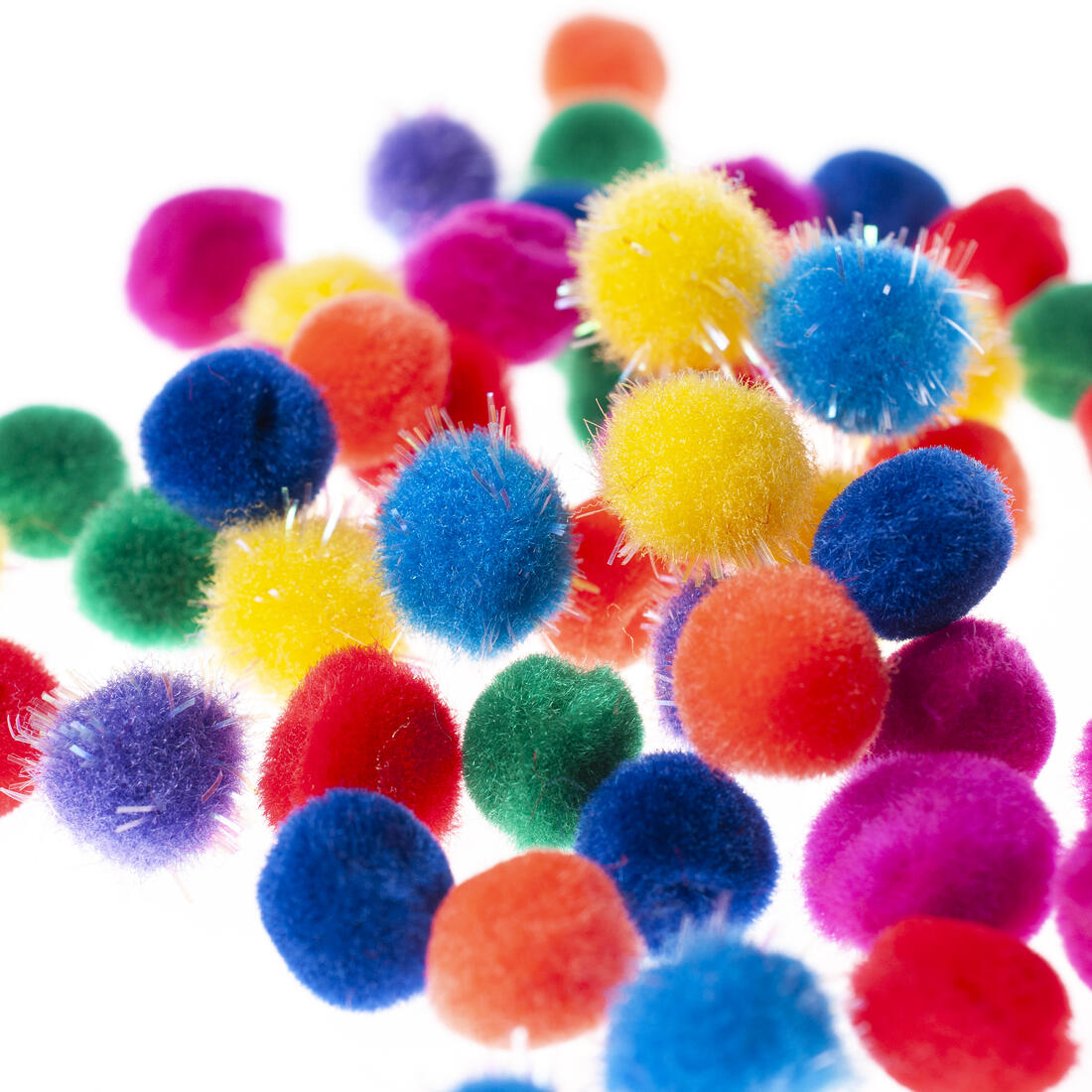 Pompons zijn voor alle leeftijden, iedereen houdt van ze. Deze zachte ballen in vele kleuren zijn perfect voor talloze knutselwerkjes. Gemaakt van 100% nylon. Maak grappige dieren, geluksbrengers, kleurrijke kettingen met pompons. Verkrijgbaar in verschillende kleuren.